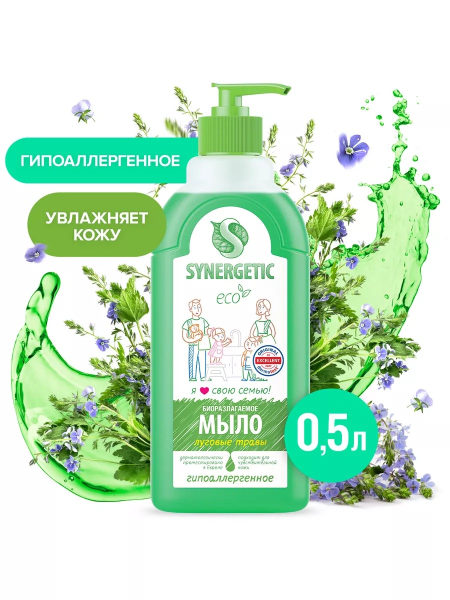 SYNERGETIC Мыло жидкое для мытья луговые травы, 500 мл