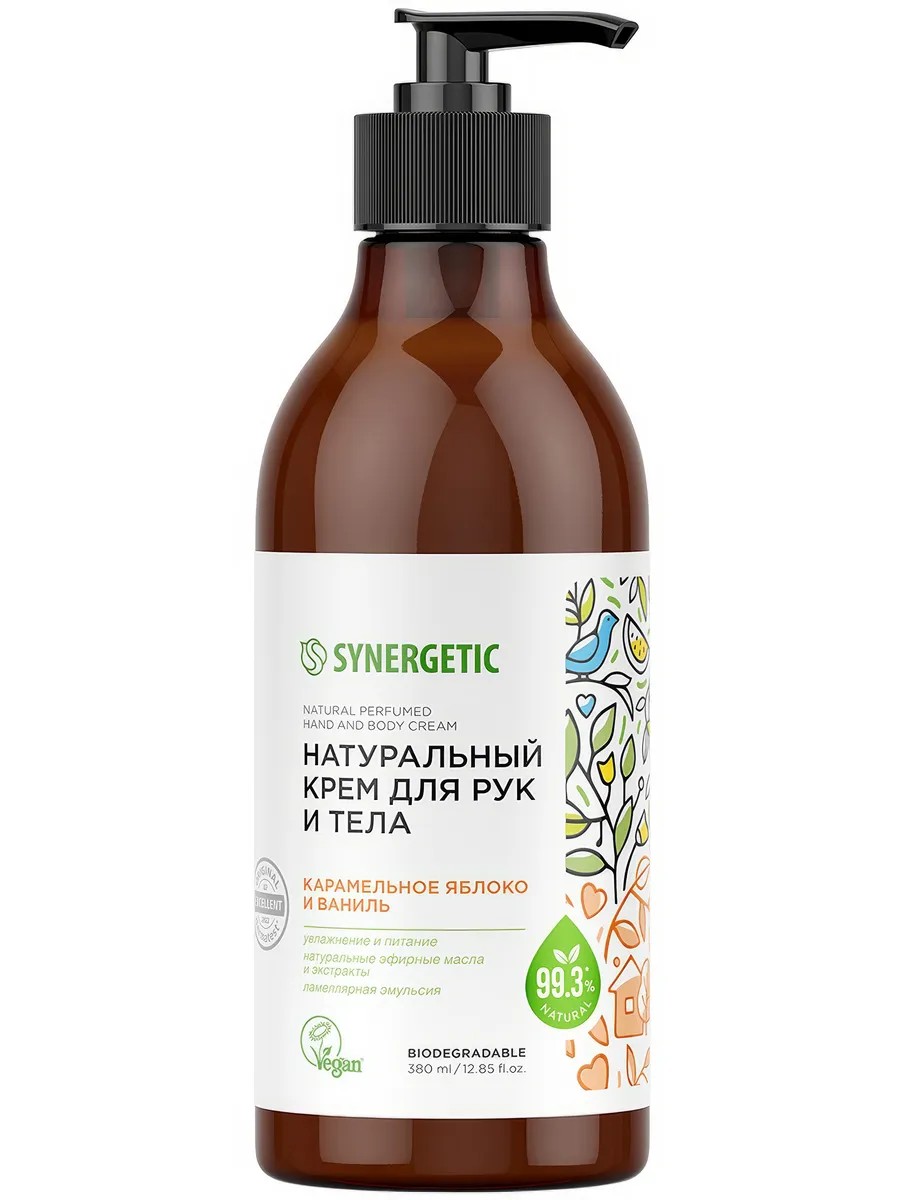 SYNERGETIC Крем Натуральный для рук и тела, яблоко и ваниль, 380 мл