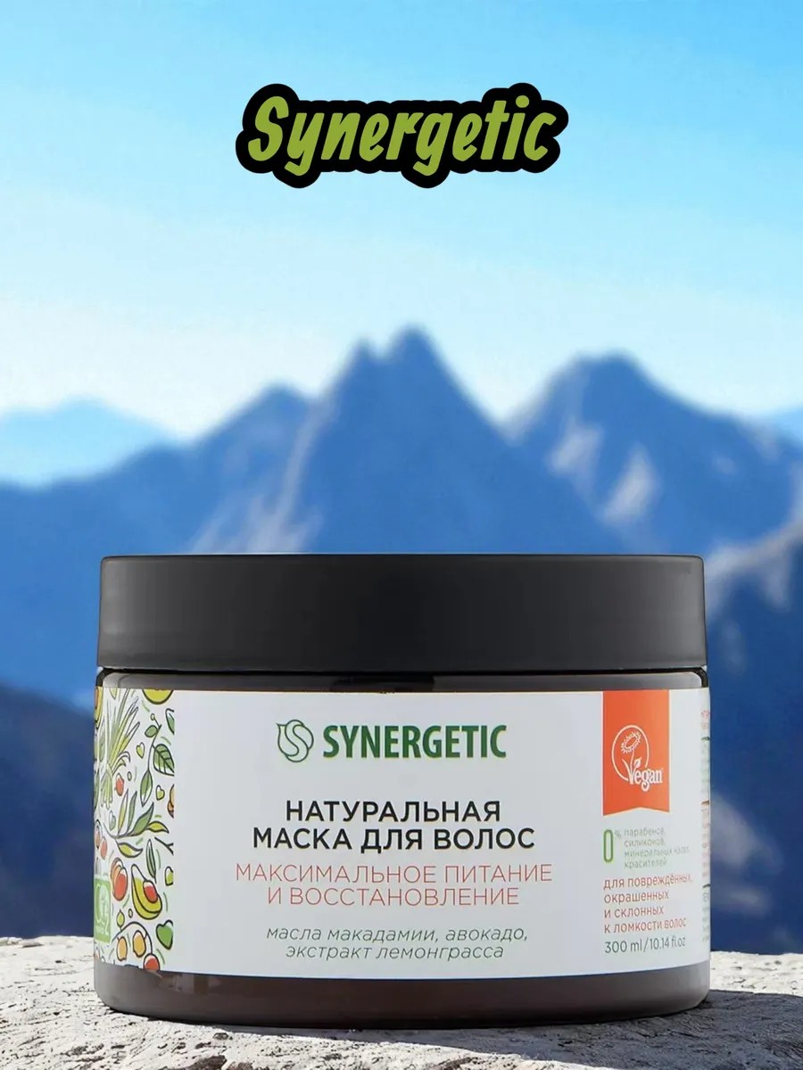 Натуральная маска для волос Synergetic "Максимальное питание и восстановление" - это эффективное средство для ухода за волосами, которое обеспечивает глубокое питание и восстановление волос. Объем составляет 300 мл, что делает его удобным для использования в домашних условиях.