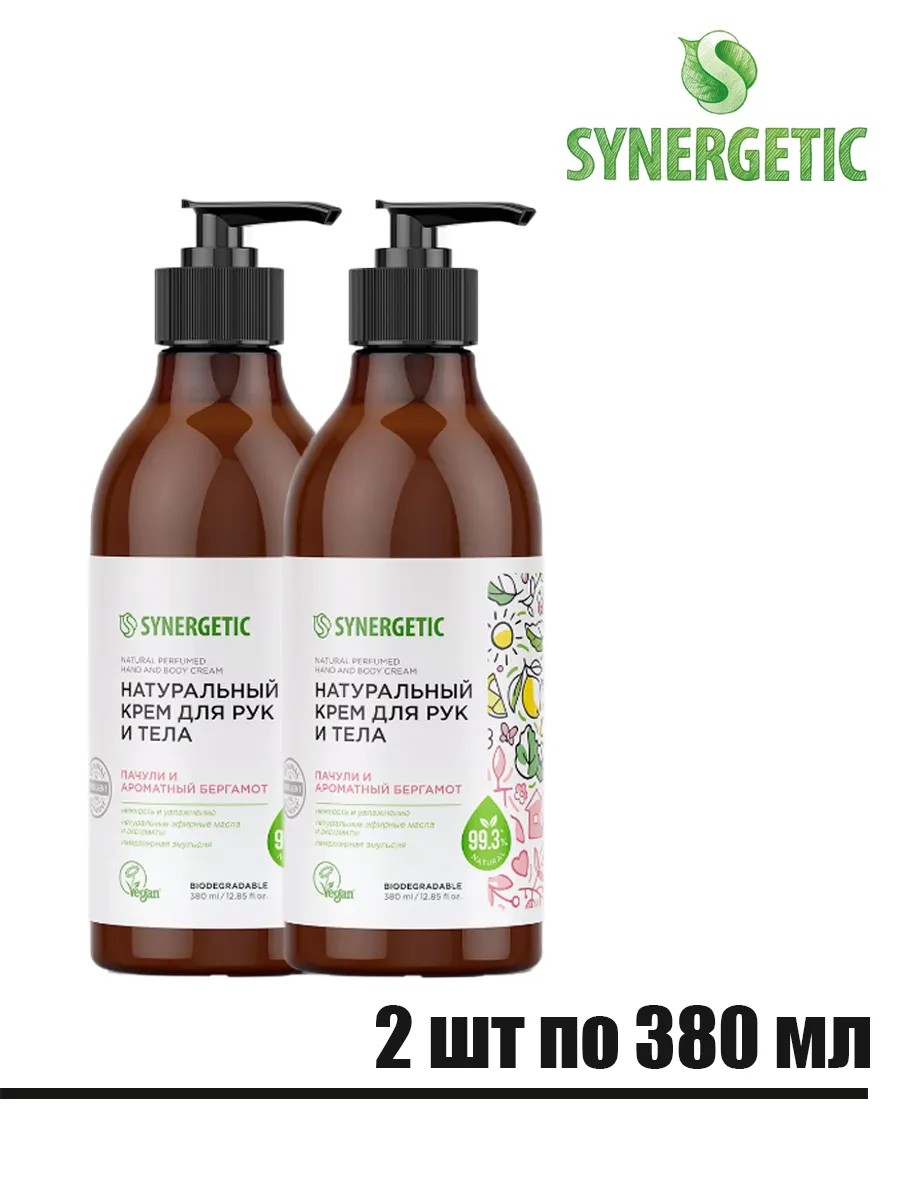 | Комплектация | SYNERGETIC Крем для рук и тела натуральный Пачули и ароматный бергамот 380 мл, 2 штуки |