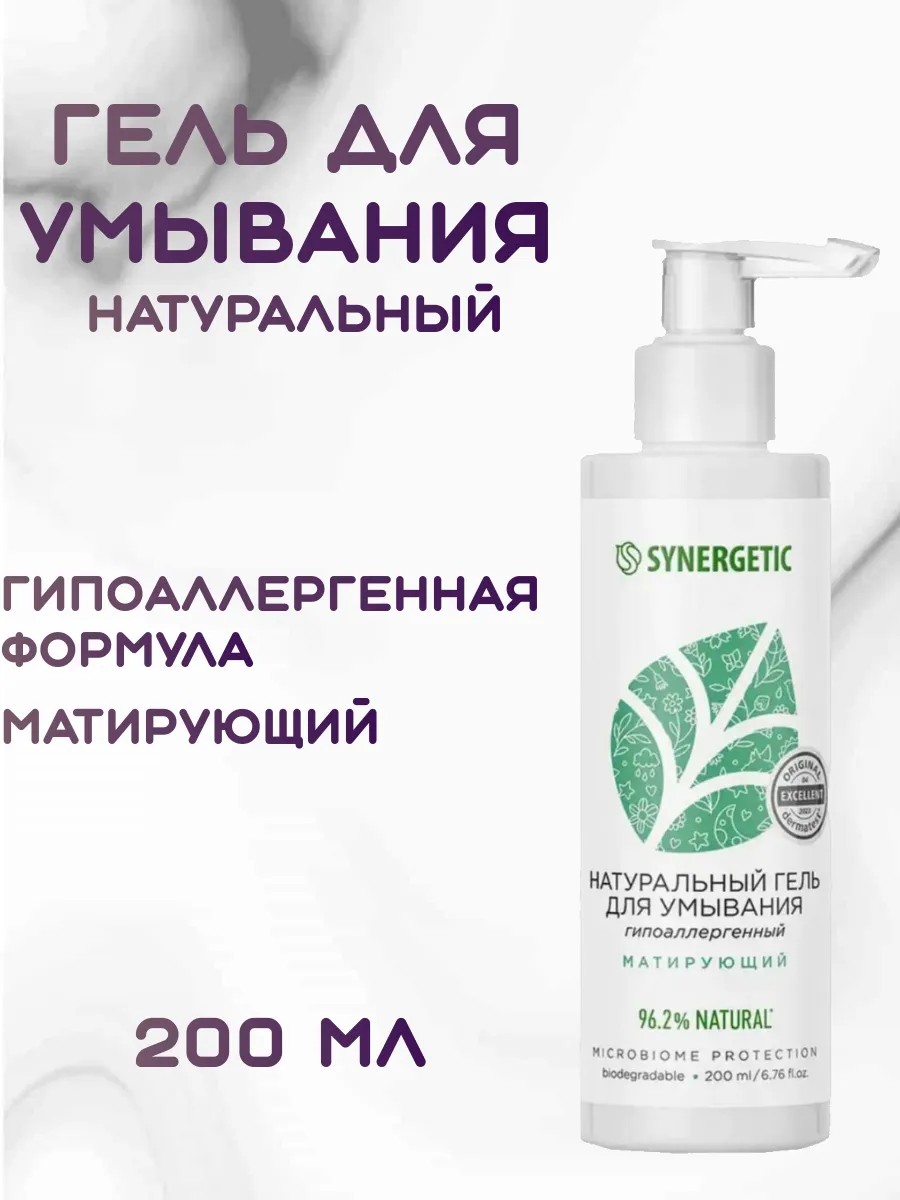 Гипоаллергенный матирующий гель для умывания SYNERGETIC деликатно очищает, легко смывается водой, обеспечивая бережный ежедневный уход и чувство свежести. Этот гель станет вашим незаменимым помощником для поддержания красоты и здоровья вашей кожи. Комплекс молочной и шикимовой кислот ускоряет процесс регенерации клеток, выравнивая тон, разглаживая мелкие морщинки и устраняя несовершенства.