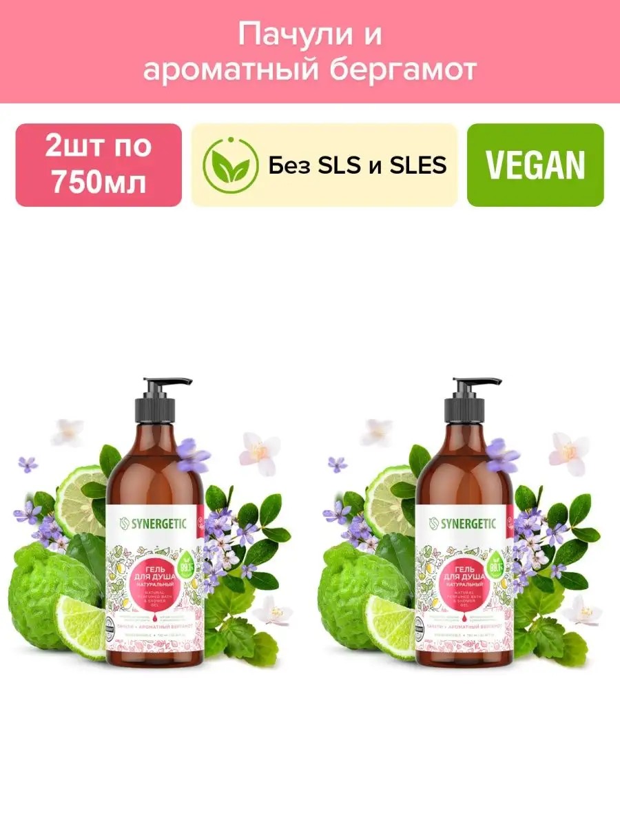 SYNERGETIC Гель для душа Пачули и Ароматный Бергамот, 2шт по 750мл