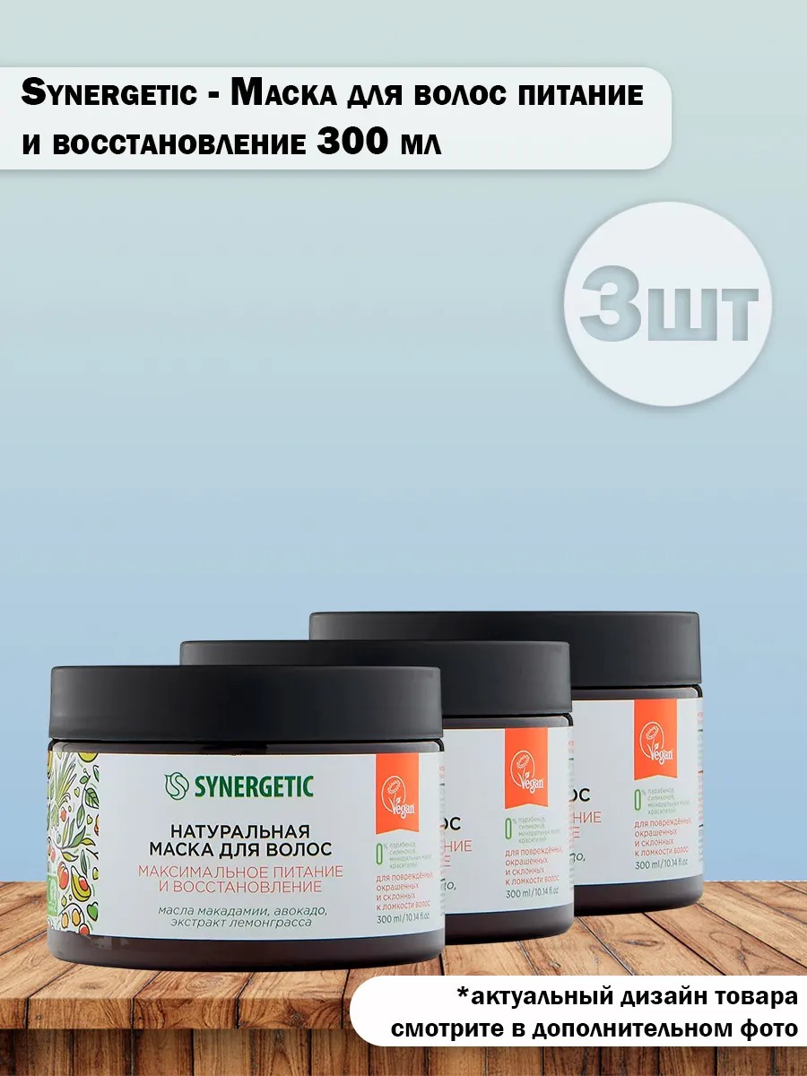 SYNERGETIC Набор 3 шт маска для волос питание и восстановление 300 мл