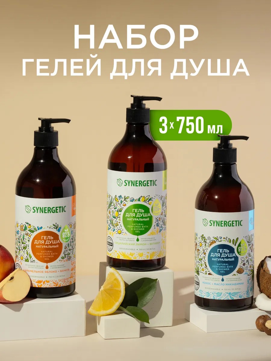 SYNERGETIC Набор гель для душа, 3 шт. по 750 мл