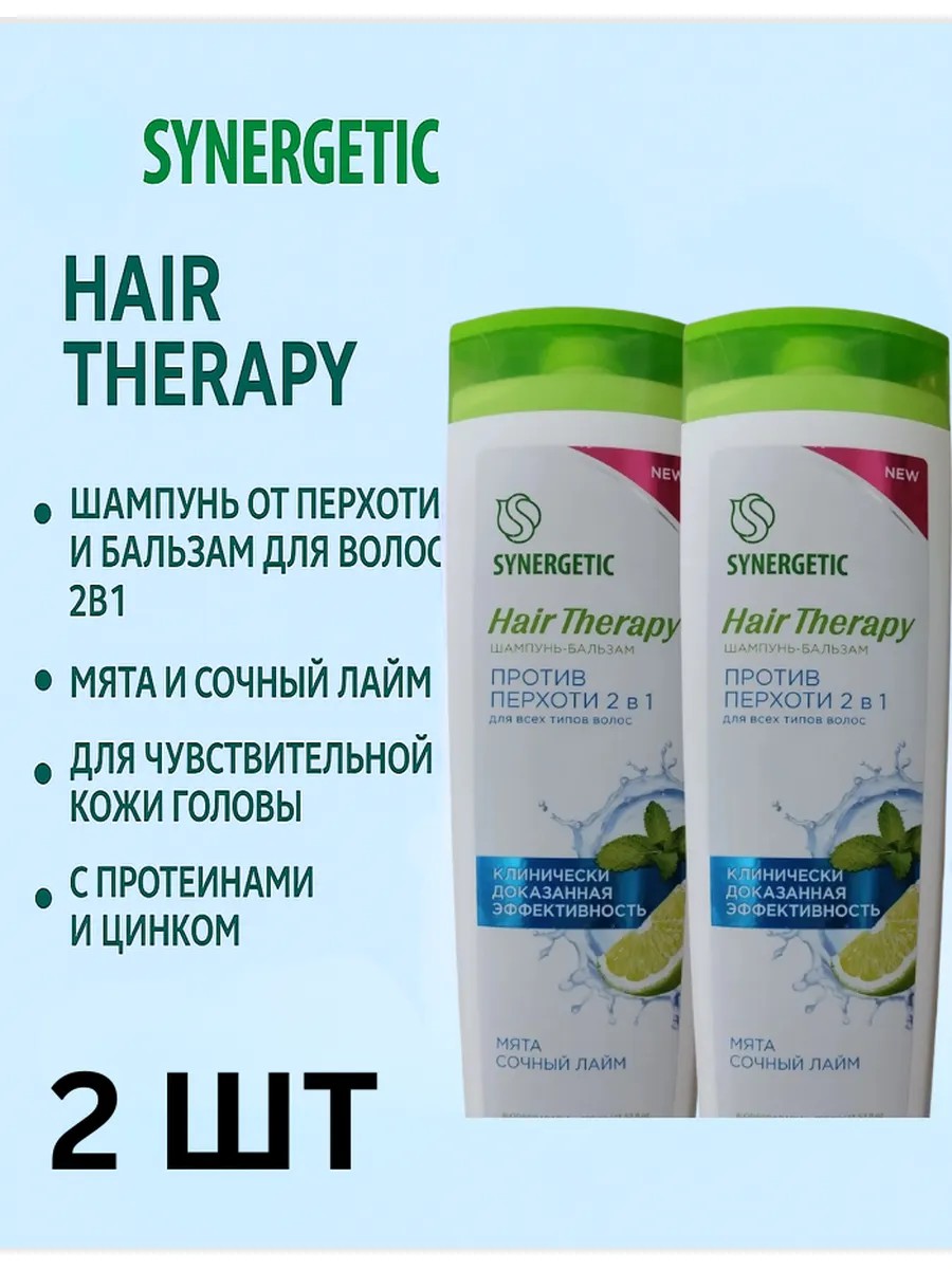 SYNERGETIC Шампунь-бальзам Против перхоти 2 в 1 HAIR THERAPY 400 мл X2 шт