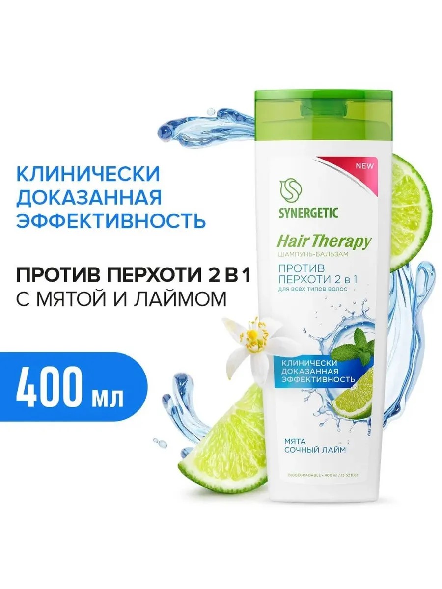 SYNERGETIC Шампунь-бальзам Против перхоти 2 в 1 HAIR THERAPY 400 мл