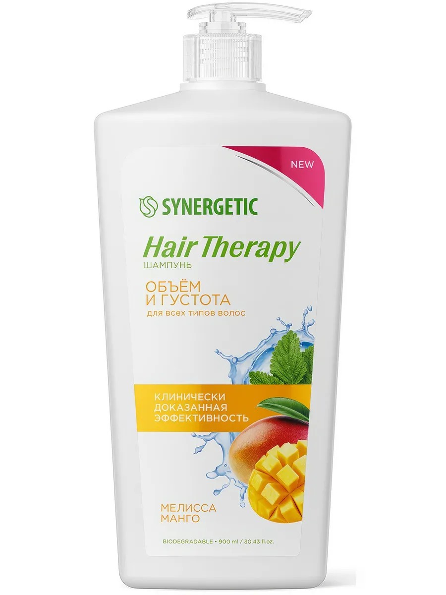 SYNERGETIC Шампунь Hair Therapy Объем и густота мелисса и манго, 900 мл