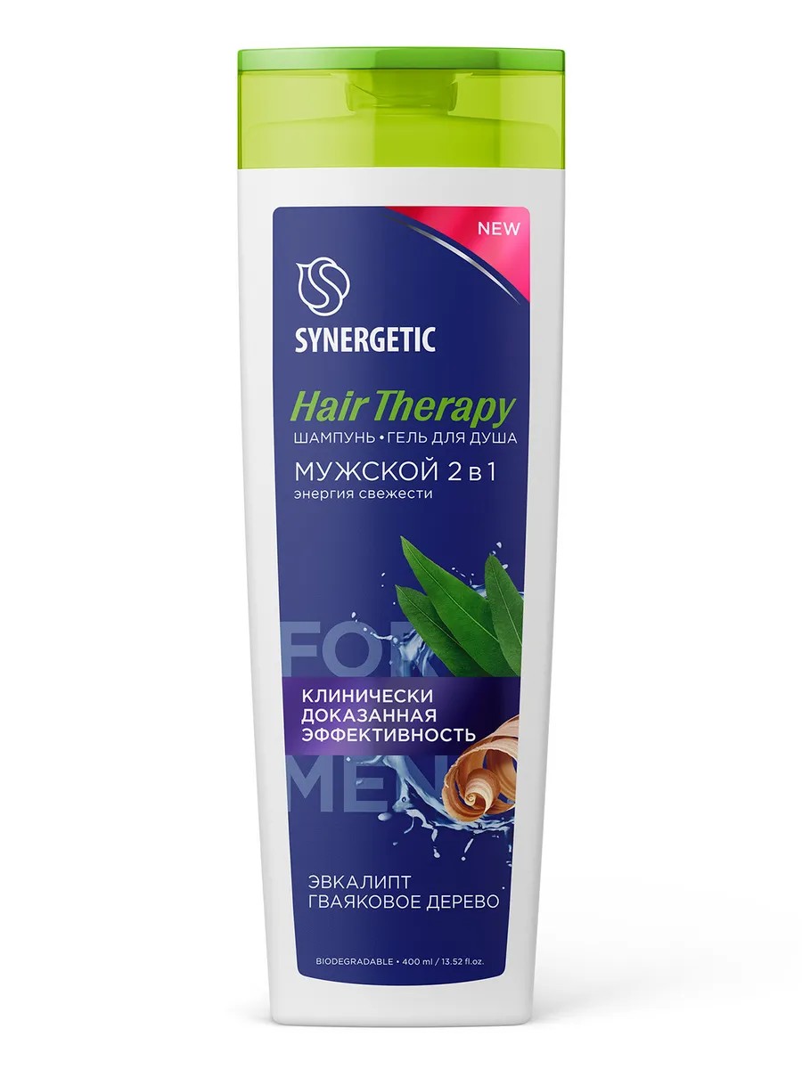 SYNERGETIC Шампунь-гель для душа 2 в 1 мужской HAIR THERAPY, 400 мл