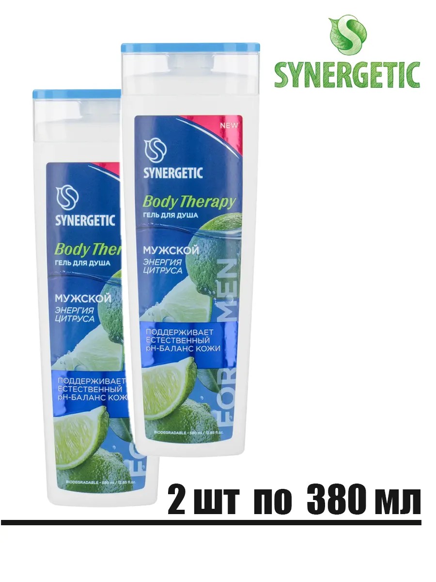 | Комплектация | Synergetic Гель для душа мужской Энергия цитруса, 2 штуки по 380 мл. |