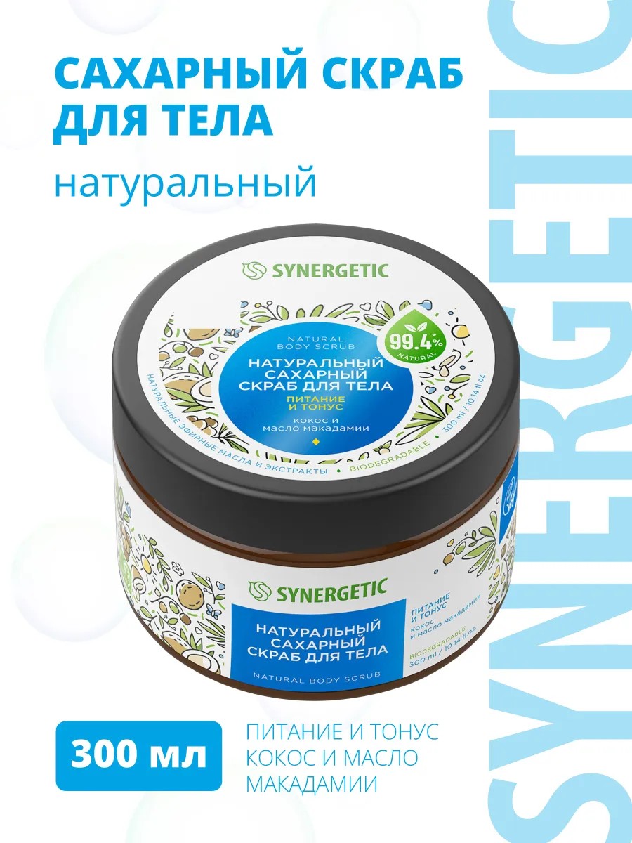SYNERGETIC Natural Sugar Body Scrub is an effective skin care product made from over 99% natural ingredients. The scrub gently exfoliates and massages the skin.