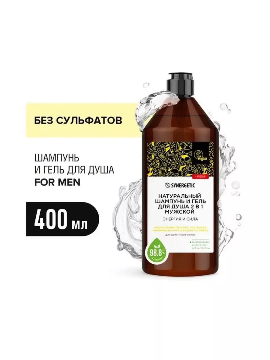 SYNERGETIC Бессульфатный шампунь и гель для душа «2 в 1» 400мл