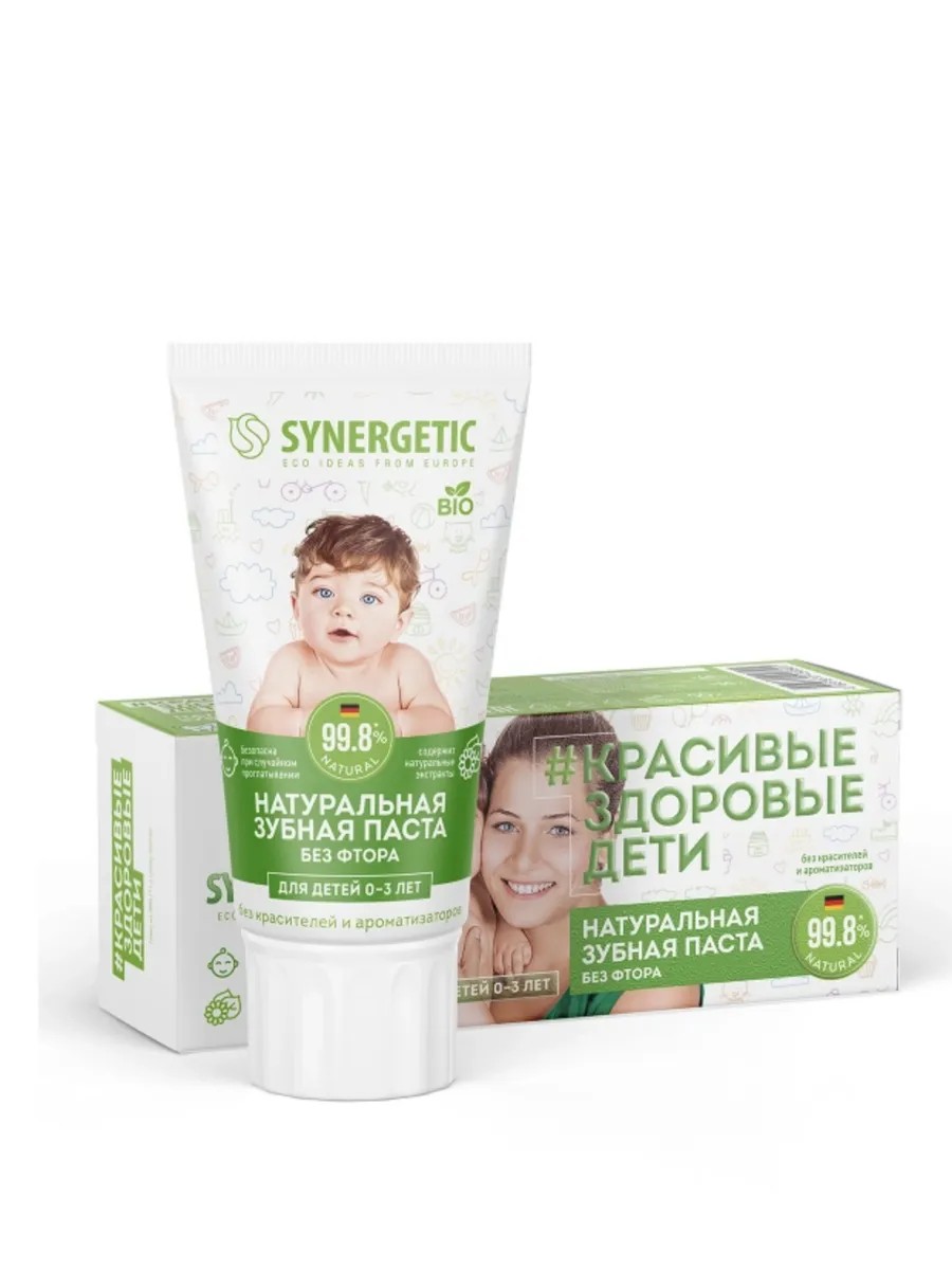 Натуральная зубная паста SYNERGETIC для детей от 0 до 3 лет создана специально для бережного ухода за полостью рта малыша с самого раннего возраста. Благодаря полностью безопасной формуле без фтора, красителей и ароматизаторов, паста мягко очищает первые зубки, укрепляет эмаль и заботится о деснах, не вызывая раздражения и не представляя опасности при случайном проглатывании. Натуральные растительные экстракты и кальциевая формула способствуют минерализации эмали и обладают выраженным противовоспалительным эффектом. Клинически доказанная эффективность уже через 4 недели использования делает эту пасту идеальным выбором для ежедневной заботы о здоровье полости рта вашего ребёнка.