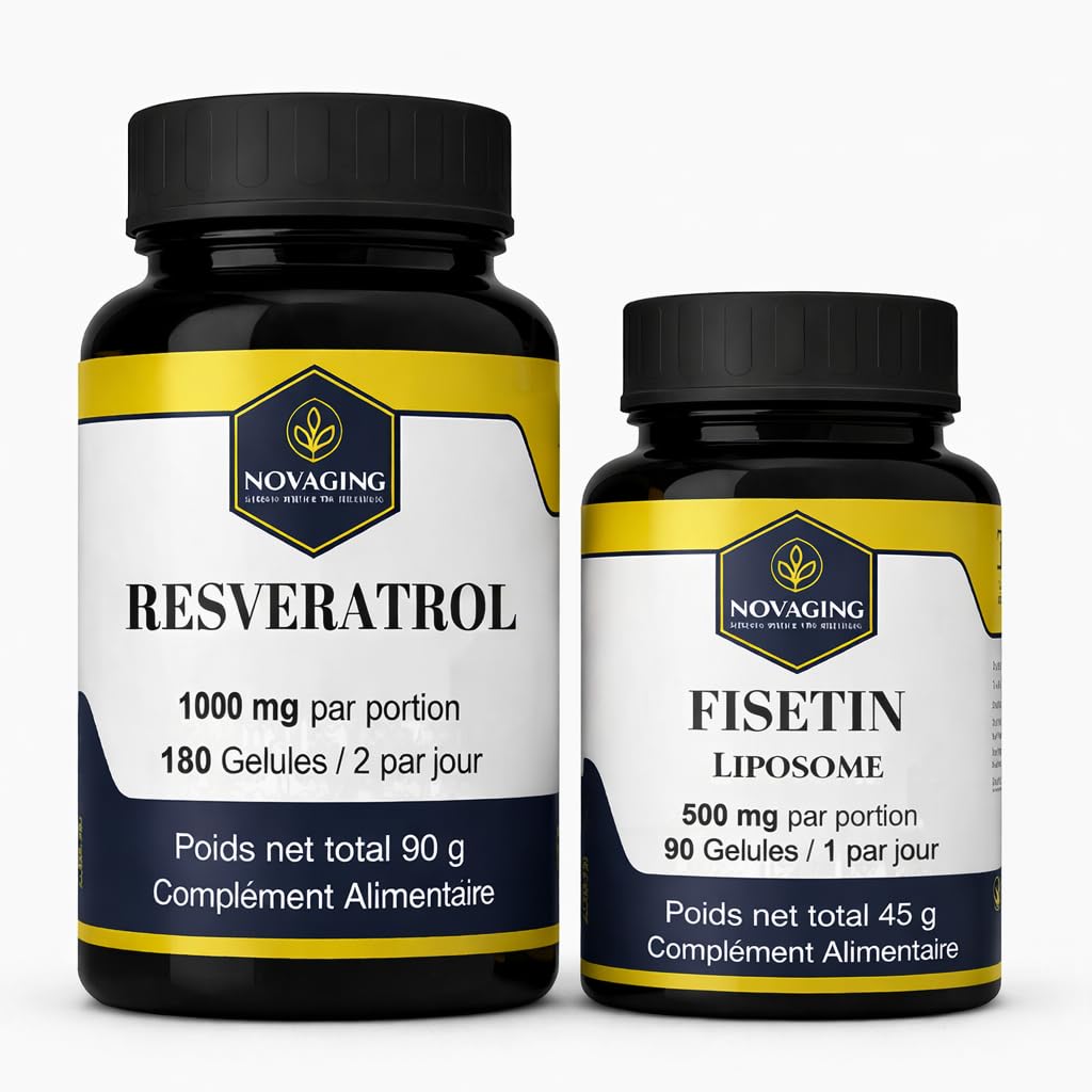 Synergie Longévité Cellulaire, Pack Duo "Métabolisme Mitochondries", Résveratrol Fisetin. Testé Sans additifs, OGM ni Allergènes.