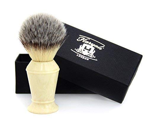 Synthetic hair shaving brush ivory -colored handle with classic box gift - Made in England - Art hair is considered an above -average standard and is therefore ideal as a peeling for the skin and as a preparation for shaving. - synthetic hair shaving brush - artificial ivory handpiece - brush knot height = 50mm brush weight = 97grams - Brush total height = 100mm synthetic hair length = 49mm