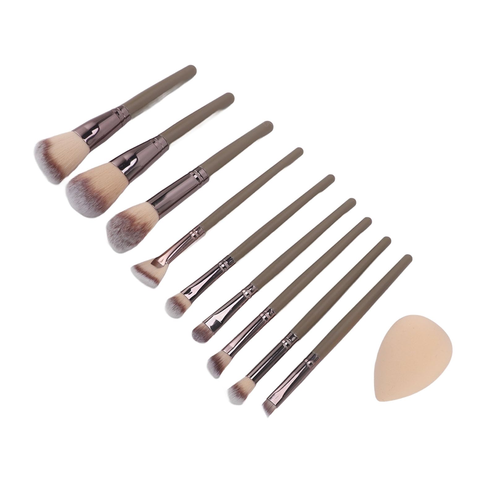 1. VERSATILE SET: Can be used for foundation, powder, concealers, eye shadows, and more. Comes with a storage cylinder, storage box, and a sponge for added convenience. 2. ERGONOMIC DESIGN: Each brush in our set is ergonomically designed to perfectly fit in your hands, allowing for effortless application and professional results every time. 3. PROFESSIONAL APPLICATION: With strong powder support, these makeup brushes are perfect tools for achieving a professional and impeccable look. 4. ULTRA SOFT AND DENSE: The brushes have a silky touch, with well shaped brush hair that provide excellent coverage. A perfect gift to mothers, wives, or female friends. 5. SYNTHETIC BRUSH HAIR: Makeup brushes are made with soft synthetic fibers that are shed . All the brushes are finely crafted and dense, suitable even for the most sensitive skin. Specification: Item Type: Makeup Brush Set Material: Synthetic