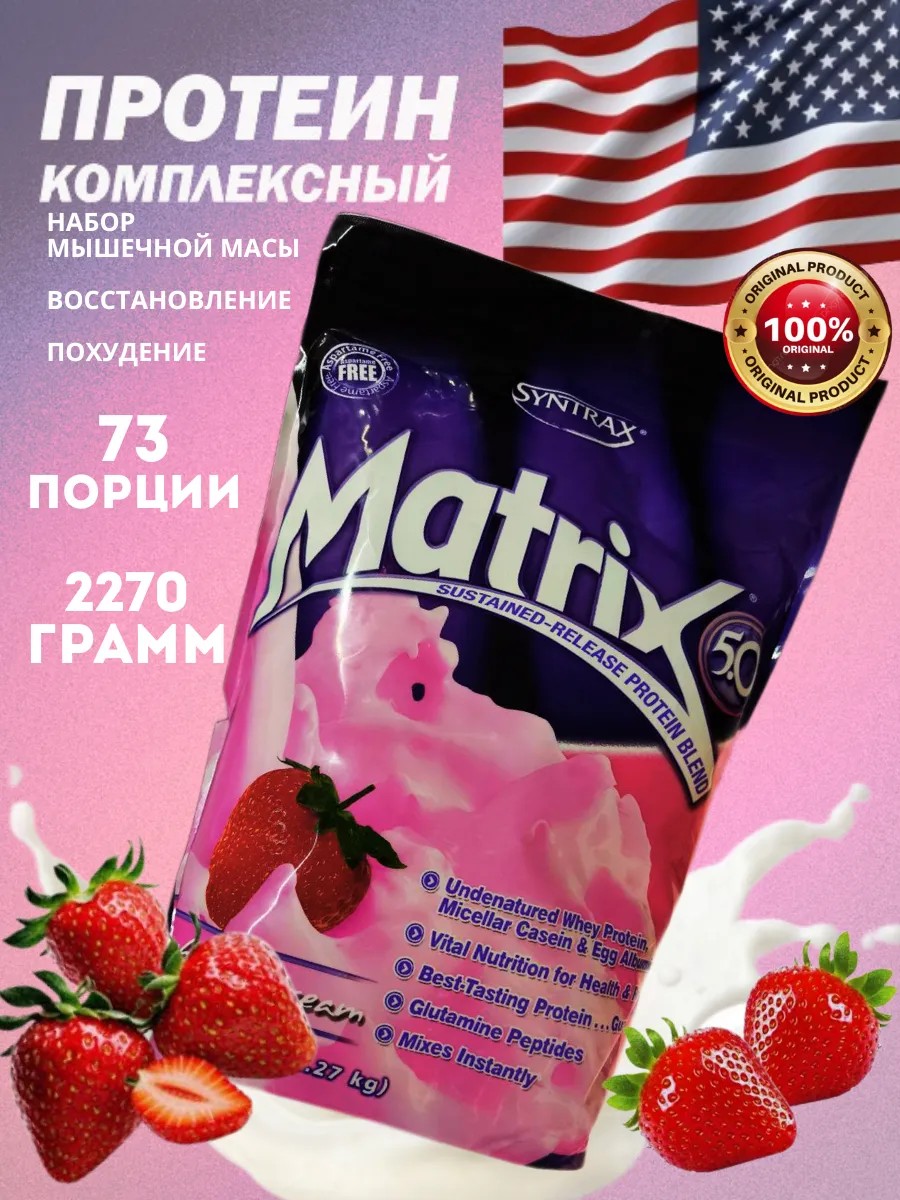Syntrax Matrix can be called a three-component protein complex, including high-quality protein sources such as whey protein, micellar casein, and egg albumin (from egg whites).
