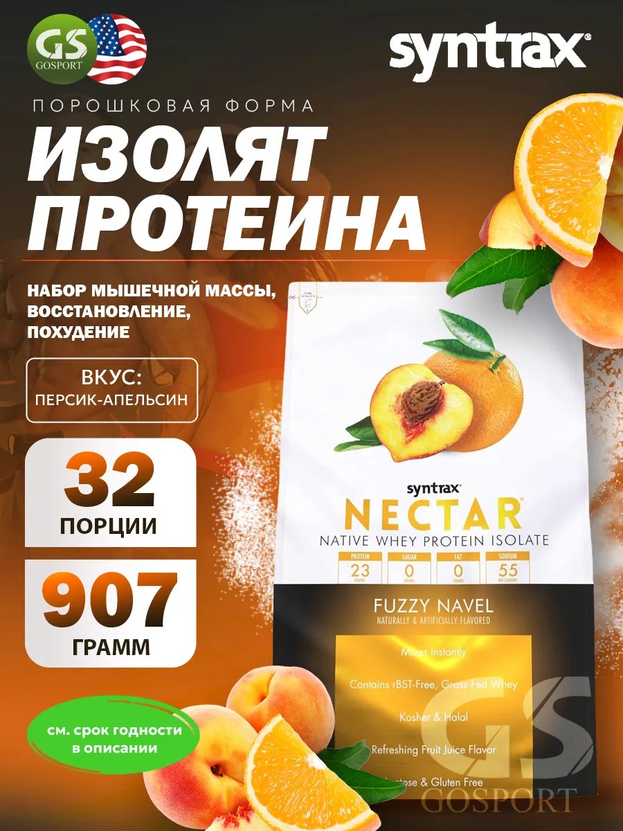 Годен до 15.04.2027. Изолят протеина Nectar 907 г, Персик-Апельсин. Nectar это изолят сывороточного протеина, превосходный вариант качественного, чистого белка, дающего максимальный результат. Высокая концентрация белка на порцию, полное отсутствие жиров, углеводов и лактозы характеризует изолят сывороточного протеина. Протеин – это основной строительный материал для нашего организма. Он играет важнейшую роль в росте мышц и восстановлении организма после тренировок. Именно поэтому изолят сывороточного протеина является неотъемлемым компонентом спортивного питания для профессиональных спортсменов и людей, занимающихся спортом. Nectar Syntrax – это идеальный протеиновый коктейль для набора мышечной массы и роста мышц. Он содержит все необходимые аминокислоты и BCAA, которые способствуют быстрому восстановлению мышц и стимулируют их рост. Продукт подходит как мужчинам, так и женщинам, которые занимаются спортом и стремятся к достижению результатов. Изолят сывороточного протеина является отличным дополнением к спортивному питанию для тех, кто хочет улучшить свою физическую форму, увеличить мышечную массу. Этот продукт также идеален для тех, кто хочет похудеть. Изолят сывороточного протеина поможет вам контролировать аппетит благодаря высокому содержанию белка, который создает чувство сытости. Также он ускоряет обмен веществ, способствуя потере лишнего жира и сохранению сухой мышечной массы. Эта добавка восстанавливает организм после интенсивных тренировок, способствует здоровому росту мышц и повышает выносливость. Nectar - это не просто напиток, а инновационный продукт для достижения ваших спортивных целей. Рекомендации по применению пищевой добавки: смешайте 1/4-4/4 мерной ложки Nectar продукта с 100-300 мл воды, молока или сока. Полная мерная ложка содержит 23 г протеина. Принимайте по 2–3 порции в день. Помните, что самое лучшее время приема — сразу после сна, после интенсивной физической активности и перед сном.