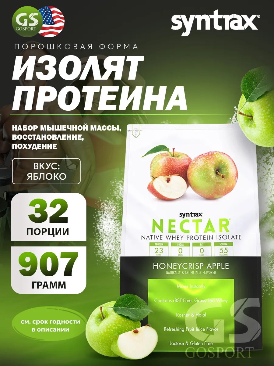 Годен до 15.04.2027. Изолят протеина Nectar 907 г, Яблоко. Nectar это изолят сывороточного протеина, превосходный вариант качественного, чистого белка, дающего максимальный результат. Высокая концентрация белка на порцию, полное отсутствие жиров, углеводов и лактозы характеризует изолят сывороточного протеина. Протеин – это основной строительный материал для нашего организма. Он играет важнейшую роль в росте мышц и восстановлении организма после тренировок. Именно поэтому изолят сывороточного протеина является неотъемлемым компонентом спортивного питания для профессиональных спортсменов и людей, занимающихся спортом. Nectar Syntrax – это идеальный протеиновый коктейль для набора мышечной массы и роста мышц. Он содержит все необходимые аминокислоты и BCAA, которые способствуют быстрому восстановлению мышц и стимулируют их рост. Продукт подходит как мужчинам, так и женщинам, которые занимаются спортом и стремятся к достижению результатов. Изолят сывороточного протеина является отличным дополнением к спортивному питанию для тех, кто хочет улучшить свою физическую форму, увеличить мышечную массу. Этот продукт также идеален для тех, кто хочет похудеть. Изолят сывороточного протеина поможет вам контролировать аппетит благодаря высокому содержанию белка, который создает чувство сытости. Также он ускоряет обмен веществ, способствуя потере лишнего жира и сохранению сухой мышечной массы. Эта добавка восстанавливает организм после интенсивных тренировок, способствует здоровому росту мышц и повышает выносливость. Nectar - это не просто напиток, а инновационный продукт для достижения ваших спортивных целей. Рекомендации по применению пищевой добавки: смешайте 1/4-4/4 мерной ложки Nectar продукта с 100-300 мл воды, молока или сока. Полная мерная ложка содержит 23 г протеина. Принимайте по 2–3 порции в день. Помните, что самое лучшее время приема — сразу после сна, после интенсивной физической активности и перед сном.