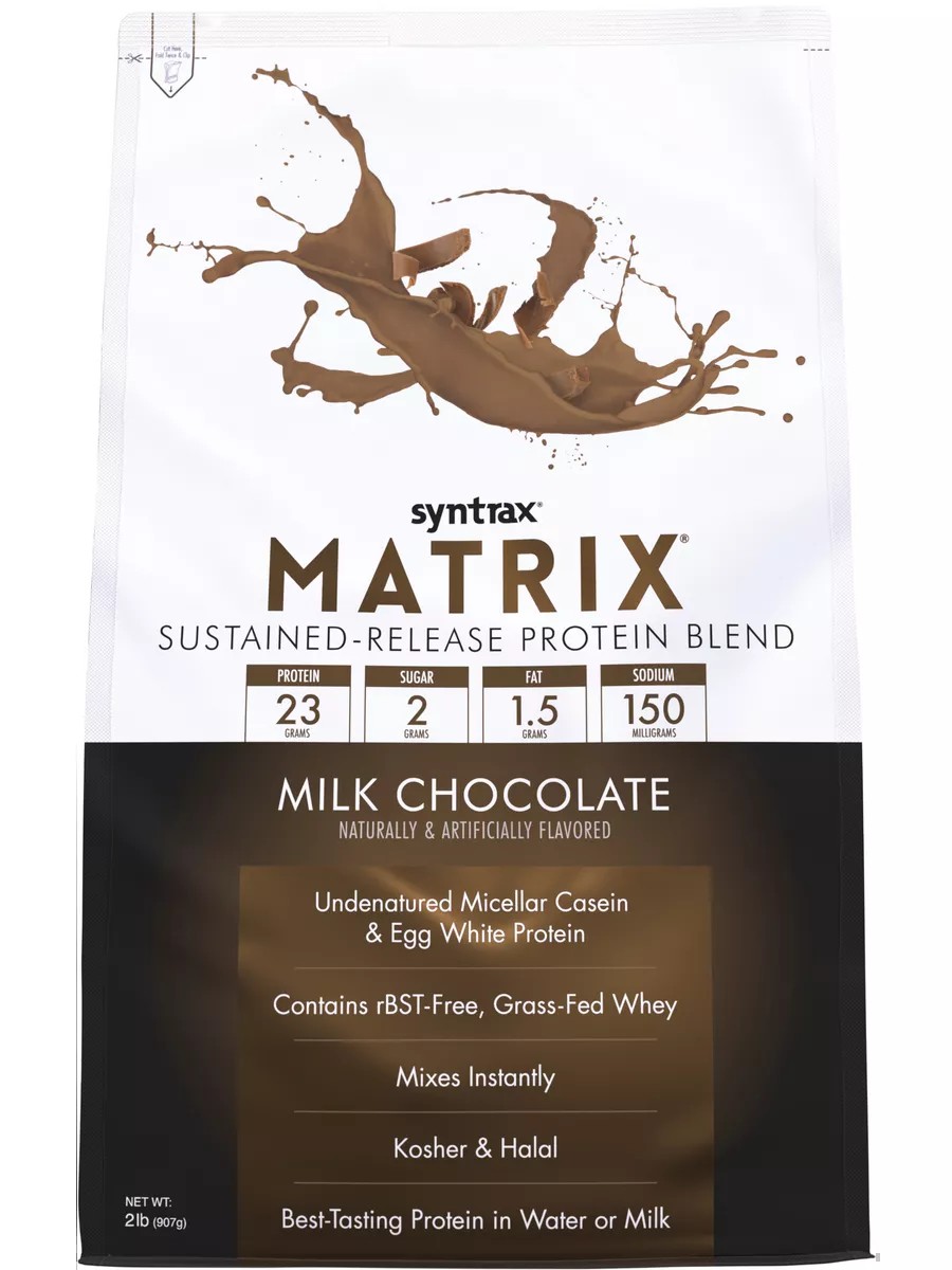 MATRIX 2.0 от компании Syntrax - это один из самых популярных высококачественных протеиновых комплексов. Каждая порция содержит 23 гр белка из концентрата сывороточного белка, концентрата молочного белка и яичного альбумина. MATRIX 2.0 можно принимать в любое время дня, т.к. он содержит оба источника белка и быстроусвояемый сывороточный протеин и медленноусвояемый молочный протеин. Продукт идеально подходит для восполнения дефицита белка при любой ситуации - после тренировки, с утра или же перед сном. Он одинаково хорош как для строительства мышечной массы, так и для уменьшения жировых отложений. Легко размешивается и имеет превосходный вкус! А еще, помимо протеиновых коктейлей, с MATRIX 2.0 от Syntrax можно приготовить вкусную диетическую выпечку. Внутри продукта находится пакет с влагоудерживающим агентом. Будьте внимательны!