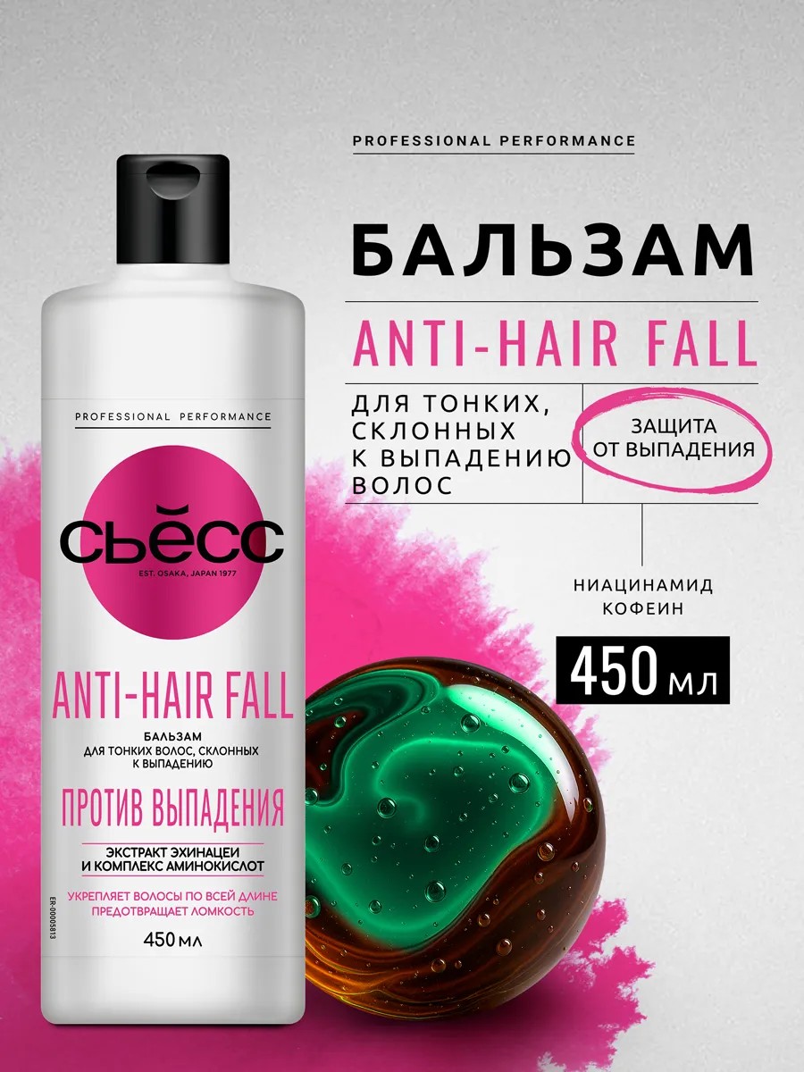 Профессиональный бальзам - ополаскиватель Сьесс Anti-Hair Fall — это эффективное средство для бережного ухода за волосами, которое помогает укрепить их по всей длине и облегчить расчёсывание.