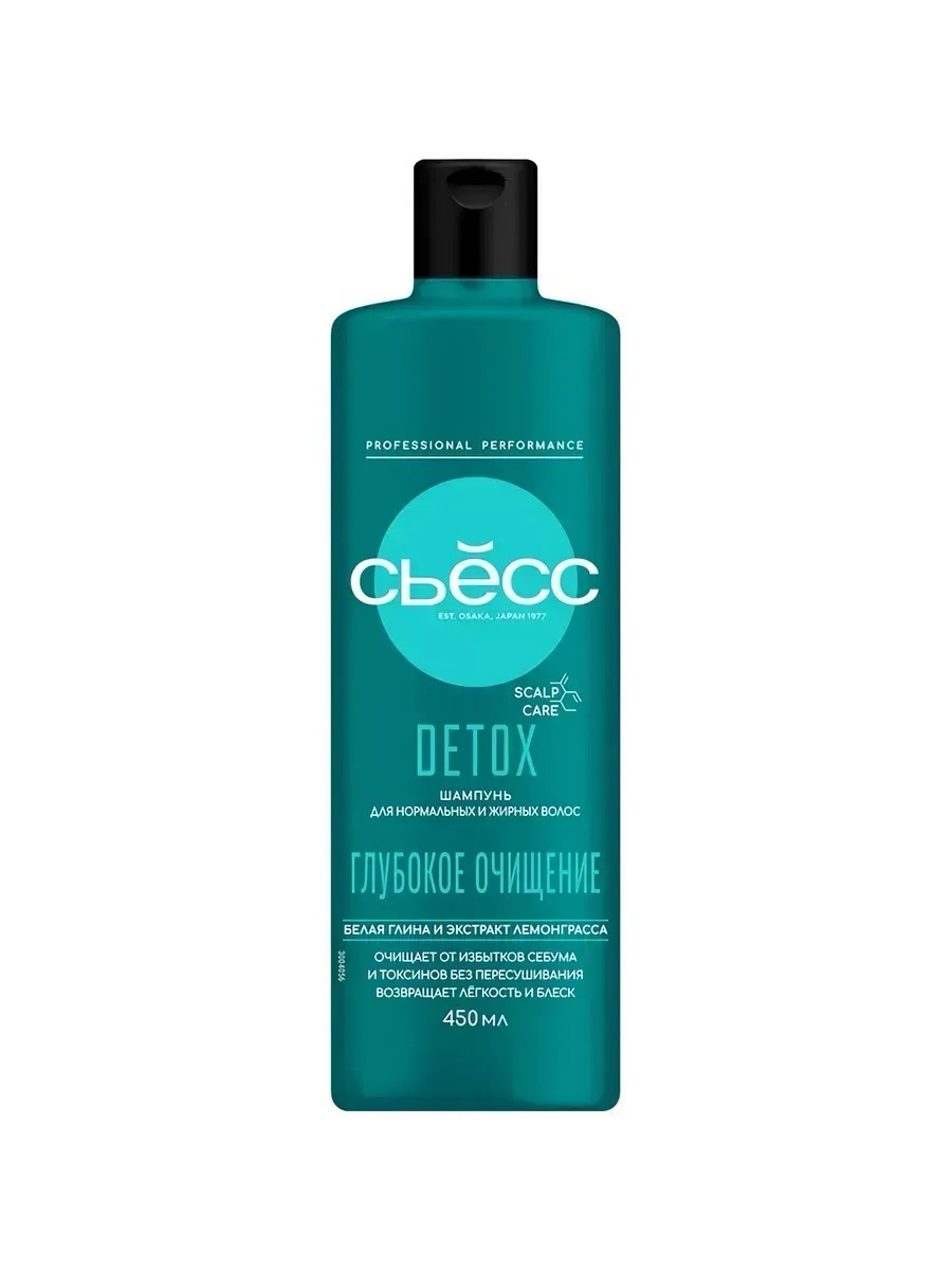 Сьёсс, шампунь для волос DETOX, 450 мл. Сьёсс Detox разработан специально для нормальных и жирных волос: белая глина глубоко очищает кожу головы, вбирая себум и очищая устья фолликул, а экстракт лемонграсса возвращает волосам легкость и блеск. Подарите своим волосам SPA-день вместе с новым шампунем СЬĔСС Detox. Специальные особенности: 0% силиконов, 90% ингредиентов yатурального происхождения. С момента основания Syoss в Осаке в 1977 году наша миссия - предоставлять средства профессионального качества, чтобы ваши волосы всегда выглядели красивыми и ухоженными как после салона.
