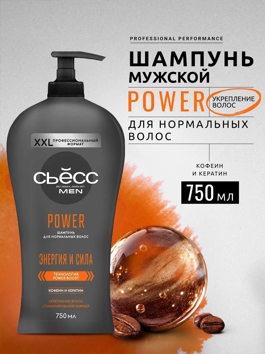 СЬЕСС Шампунь мужской Power для нормальных волос, укрепляющий, 750 мл