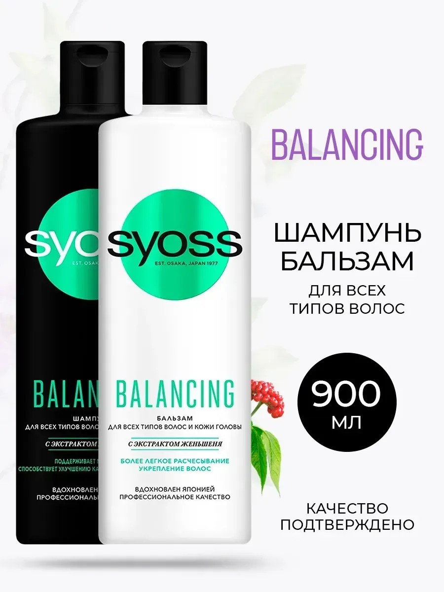 Набор из шампуня и бальзама SYOSS BALANCING предназначен для тонких и ослабленных волос, подвергающихся частым расчёсыванием и укладкам. Шампунь увлажняет и питает волосы, делая их более гладкими и блестящими. Способствует уменьшению выпадения волос, вызванного ломкостью и секущимися кончиками. Защищает волосы от УФ-излучения. Обладает кондиционирующим эффектом, придает волосам объем и силу. Бальзам бережно ухаживает, придавая силу и густоту прическе. Делает их поверхность гладкой, облегчая расчесывание. Подходит для всех типов волос, особенно для тонких и поврежденных. Способствует сокращению выпадения волос. Увеличивает объем и силу волос.