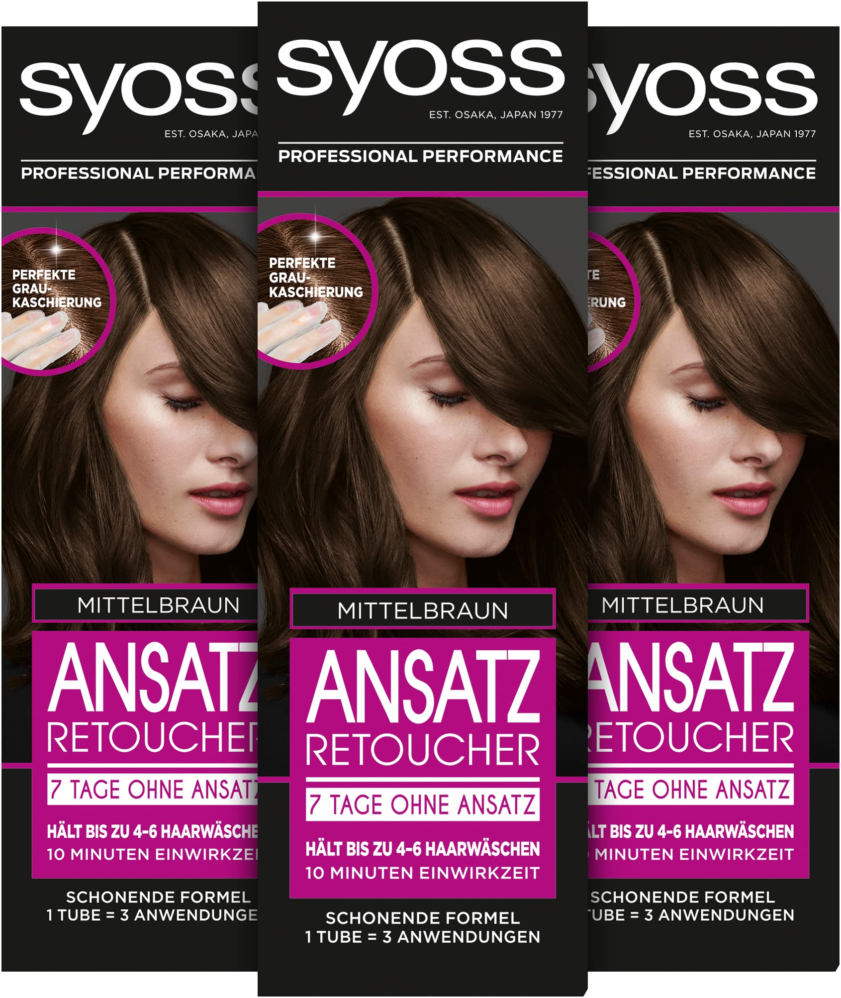Syoss Lot de 3 flacons de 60 ml de coloration semi-permanente pour racines sans racine Brun moyen niveau 1