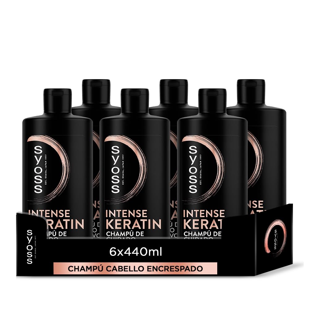 Syoss - Shampooing pour cheveux crépus et secs - Keratin - 6 unités de 440 ml - Contrôle les frisottis et répare en profondeur - Cheveux comme fraîchement sortis du coiffeur Syoss Shampooing kératine 440 ml