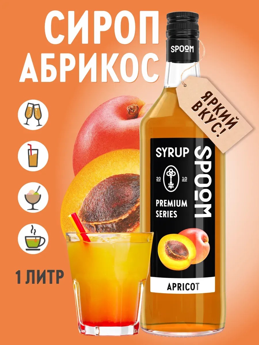 Сироп Spoom Абрикос имеет характерный оранжевый цвет, густую консистенцию и аромат свежих спелых абрикосов. Этот сироп прекрасно подойдет для разнообразных кофейных напитков, холодного чая и лимонадов. Также он прекрасно сочетается с выпечкой и десертами.