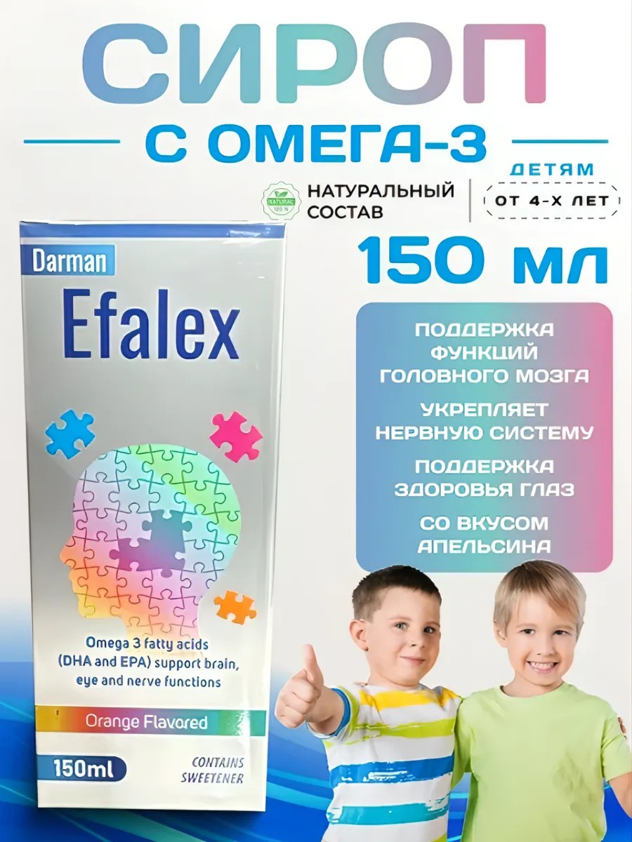 Ефалекс обеспечивает организм незаменимыми длинноцепочечными полиненасыщенными жирными кислотами DНА и АА, которые являются наиболее распространенными жирными кислотами в головном мозге и сетчатке.