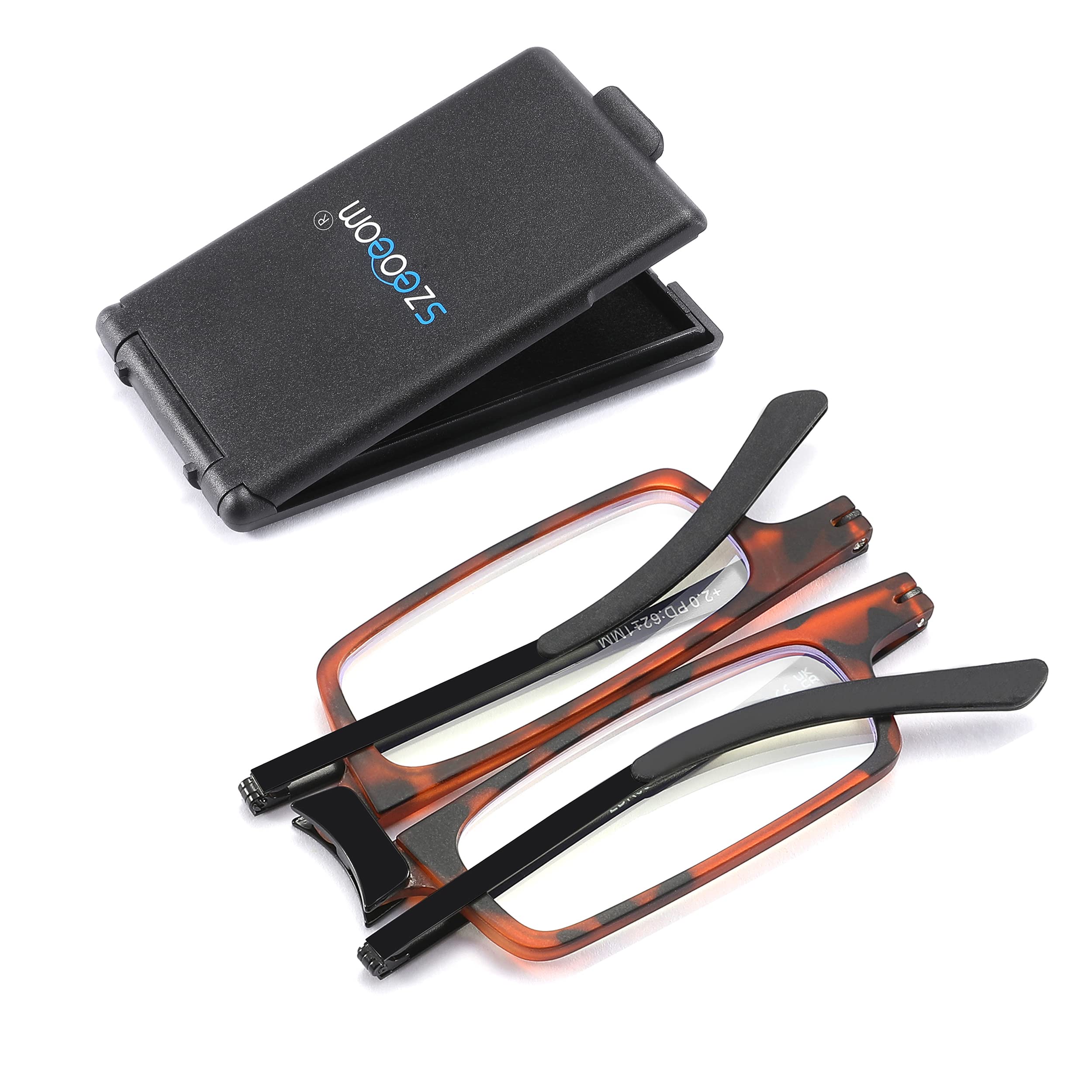 ? Sorough shopping ---> This glasses brand offers a carefree 30-day reimbursement service.If you have any questions, please contact us without hesitation.We are responsible for our glasses.We take care of the beauty of the world, we take care of it.? What we offer ---> 1 compact hard shell glasses case with soft protective film inside to prevent the glasses from scratching;1 large strong double -sided adhesive tape, with which you can glue the cover of your phone or another flat surface;1 user manual;1 glasses cleaning cloth.? Practical design , super light and durable ---> The entire glasses only weighs 10.7 g, so that after wearing there is no pressure on the head and eyes, as if you had a clear world without wearing it.? High-quality and healthy materials , Excellent corrosion resistance ---> The frame consists of Swiss EMS TR material, the brackets made of German Wagner-Edelstahl, paired with IP plating technology, the point coverage made of food-safe silicone so that you are not worriedmust that the lens fades or discolored after sweating.? Extremely portable ---> with a half folded glasses frame, several foldable ironing and almost no thickness of the glasses case, this foldable glasses can be inserted into most pockets or wallet, does not take up any space at all, is extremely compact and super wearable.It can accompany you to any place.?Sorgenfreies Einkaufen---> Diese Brillenmarke bietet einen sorgenfreien 30-Tage-Rückerstattungsservice. Bei Fragen wenden Sie sich bitte ohne Zögern an uns. Wir sind für unsere Gläser verantwortlich. Wir kümmern uns um die Schönheit der Welt, wir kümmern uns um Sie. ?WAS WIR BIETEN---> 1 kompaktes Hartschalen-Brillenetui mit weicher Schutzfolie im Inneren, um ein Verkratzen der Gläser zu verhindern; 1 großes starkes doppelseitiges Klebeband, mit dem Sie die Hülle an Ihr Telefon oder eine andere flache Oberfläche kleben können; 1 Benutzerhandbuch; 1 Brillenputztuch. ?Praktisches Design,Superleicht und langlebig---> Die gesamte Brille wiegt nur 10,7 g, sodass nach dem Tragen kein Druck auf Kopf und Augen ausgeübt wird, als ob Sie eine klare Welt hätten, ohne sie zu tragen. ?Hochwertige und gesunde Materialien, Hervorragende Korrosionsbeständigkeit---> Der Rahmen besteht aus Schweizer EMS TR-Material, der Bügel aus deutschem Wagner-Edelstahl, gepaart mit IP-Plating-Technologie, die Spitzenabdeckung aus lebensmittelechtem Silikon, sodass Sie sich keine Sorgen machen müssen, dass die Linse verblasst oder nach dem Schwitzen verfärbt. ? Extrem tragbar--->Mit einem halb gefalteten Brillengestell, mehreren faltbaren Bügeln und fast keiner Dicke des Brillenetuis kann diese faltbare Brille in die meisten Taschen oder Ihre Brieftasche gesteckt werden, nimmt überhaupt keinen Platz ein, ist extrem kompakt und super tragbar. Es kann Sie an jeden Ort begleiten.SZEOEOM Ultra dünn Faltbar Lesebrille Ultraleicht Blaues Licht Faltbare Lesegeräte zum Männer Frau Kompakt reisen tragbar Rechteck Brillenetui Schildkröte 1 Dioptrien