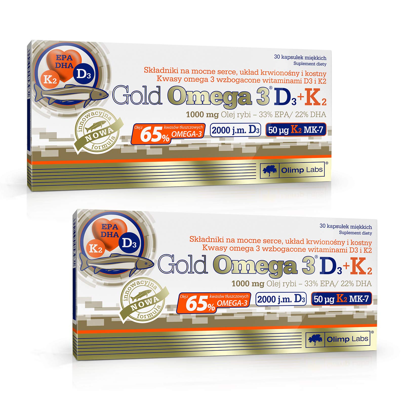 A high-omega-3 food supplement with vitamins D3 and K2. This premium, highly concentrated cold-water fish oil has a standardized 65 omega-3 fatty acid content, supplementing the diet with essential omega-3 fatty acids. Gold Omega 3 D3 K2 also contains a high amount of natural vitamin K from natto, which is the most digestible and active form of menachinon-7 (vitamin K2). The product has been supplemented with 500 IU of vitamin D3. The omega-3 fatty acids EPA (icosapentaenoic acid) and DHA (ocosahexaenoic acid) contribute to the normal function of the heart (a beneficial effect is obtained when consumption corresponds to 250 mg of EPA and DHA per day). Vitamin D also plays a role in maintaining healthy bones and teeth, ensuring the proper functioning of the immune system. Vitamin K also contributes to the maintenance of healthy bones at the recommended daily intake: 1 capsule per day after a meal with plenty of water. INGREDIENTS As a daily amount (1 capsule): fish oil (65 omega-3 fatty acids), vitamin D3 500 IU, vitamin K2 50 µg, vitamin E 12 mg DIRECTIONS 1 capsule per day after a meal with plenty of water. See more