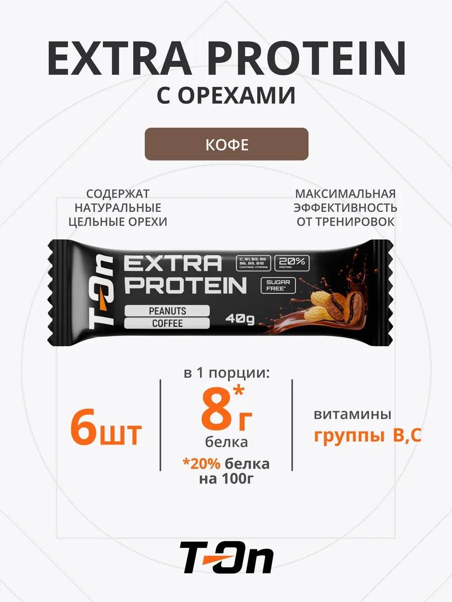 Батончик спортивный протеиновый EXTRA PROTEIN с орехами 6шт