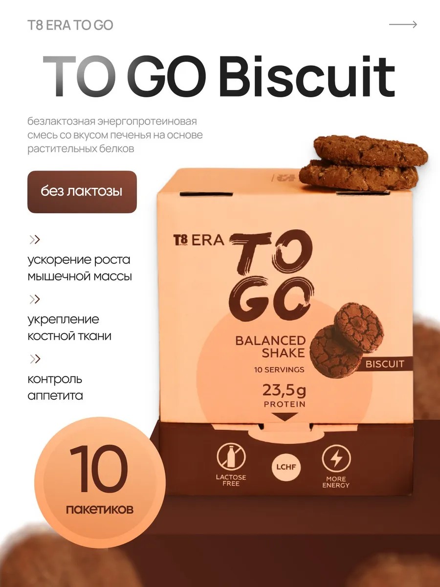 | Полное наименование товара | T8 ERA TO GO Biscuit VILAVI Безлактозная энергопротеиновая смесь Протеин Бисквит Вилави Тайга 8 |