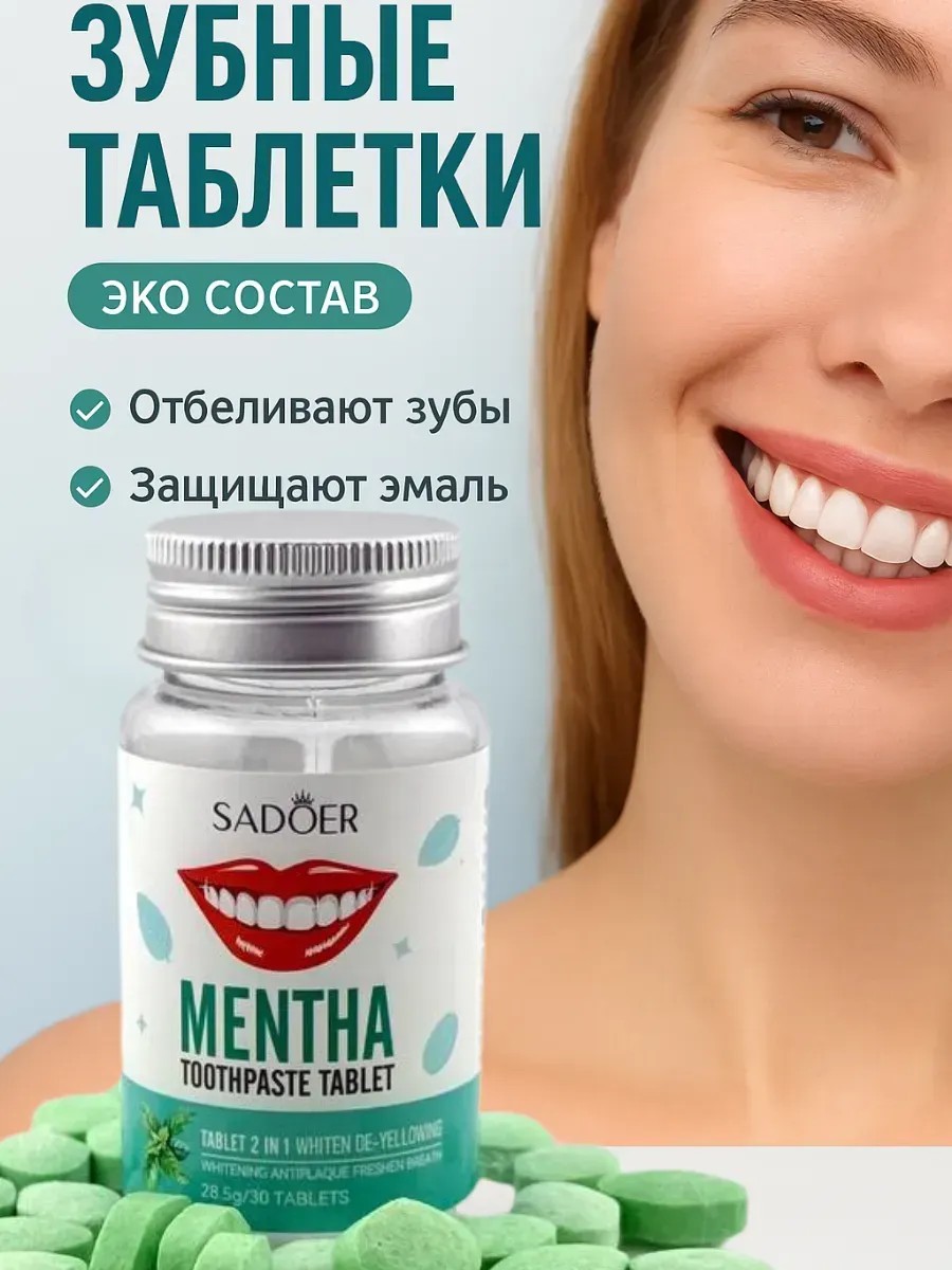 Зубные таблетки мята, 28.5 г (30 шт.) — это инновационная альтернатива привычной зубной пасте, созданная для комфортного и современного ухода за зубами и полостью рта. Удобная мини-баночка легко помещается в сумку или косметичку, поэтому средство идеально подходит как для домашнего использования, так и для путешествий, командировок или офиса.