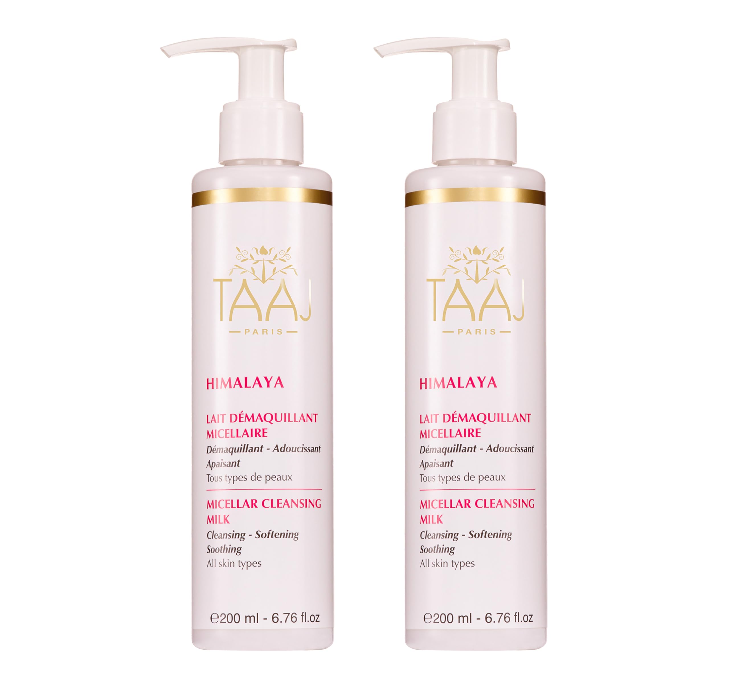 TAAJ's Himalaya Micellar Cleansing Milk effectively removes makeup and impurities while respecting the skin's natural balance. Its fine, lightweight texture provides a gentle and comfortable cleanse, leaving no greasy residue, for perfectly clean, soft, and supple skin. Enriched with Aloe Vera and Oat extracts, known for their moisturizing, soothing, and protective properties, this micellar cleanser gently cleanses the face, eyes, and neck, leaving skin soothed and comfortable after each use. Developed in France in collaboration with a laboratory located in the Himalayan highlands, TAAJ micellar cleansing milk is formulated with Himalayan spring water, plant extracts, and natural oils, inspired by ancestral wellness rituals. Cleanses and removes makeup without drying. Light texture, non-greasy. Suitable for daily use. Vegan. Made in France. Economy size: Pack of 2. Contents: 2 x 200ml INGREDIENTS To be editedCONTENTS Pack of 2 x 200 ml micellar cleansing milk. TAAJ Developed in France in collaboration with a laboratory in India located in the Himalayan highlands, TAAJ skincare products are formulated with Himalayan spring water, plant extracts, and natural oils, whose synergistic effects provide beneficial properties for the body. DIRECTIONS FOR USE Apply morning and or evening to the face, eyes, and neck using a cotton pad, then rinse with water. RESULTS Thanks to its fine and light texture, this makeup remover offers optimal cleansing without any greasy residue. Skin is impeccably clean, soft, supple, and soothed. Micellar Cleansing Milk With this micellar cleansing milk, you can easily remove makeup and impurities. Preserves the skin's natural balance and is enriched with Aloe Vera and Oat extracts.TAAJ Lait Démaquillant Micellaire Himalaya Nettoie et démaquille Élimine les impuretés Peau parfaitement douce et souple Fabriqué en France Végétalien Pack de 2 × 200 mlDESCRIPTION DU PRODUIT DESCRIPTION DU PRODUIT Le Lait Démaquillant Micellaire Himalaya de TAAJ élimine efficacement le maquillage et les impuretés tout en respectant l'équilibre naturel de la peau. Sa texture fine et légère offre un nettoyage doux et confortable, sans laisser de sensation grasse, pour une peau parfaitement propre, douce et souple. Enrichi en extraits d'Aloe Vera et d'Avoine, connus pour leurs propriétés hydratantes, apaisantes et protectrices, ce démaquillant micellaire nettoie délicatement le visage, les yeux et le cou, laissant la peau apaisée et confortable après chaque utilisation. Développé en France en collaboration avec un laboratoire situé sur les plateaux de l'Himalaya, le soin micellaire TAAJ est formulé à base d'Eau de Source de l'Himalaya, d'extraits de plantes et d'huiles naturelles, inspirés des rituels de bien-être ancestraux. Nettoie et démaquille sans dessécher Texture légère, sans effet gras Convient pour un usage quotidien Végétalien Fabriqué en France Format Economique : Pack de 2 Contenu: 2×200ml INGRÉDIENTS À éditerCONTENU Pack de 2 × 200 ml de lait démaquillant micellaire. TAAJ Développés en France en collaboration avec un laboratoire en Inde situé sur les plateaux de l'Himalaya, les soins TAAJ sont élaborés à base d'Eau de Source de l'Himalaya, d'extraits de plantes et d'huiles naturelles, dont les synergies apportent des propriétés bénéfiques pour le corps. CONSEILS D'UTILISATION Appliquer le matin et ou le soir sur le visage, les yeux et le cou à l'aide d'un coton, puis rincer à l'eau. RÉSULTATS Grâce à sa texture fine et légère, ce démaquillant offre un nettoyage optimal sans aucun effet gras. La peau est impeccablement propre, douce, souple et apaisée. Lait démaquillant micellaire Grâce à ce lait démaquillant micellaire, vous pouvez facilement éliminer le maquillage et les impuretés. Préserve l'équilibre naturel de la peau et est enrichie en extraits d'Aloe Vera et d'Avoine.