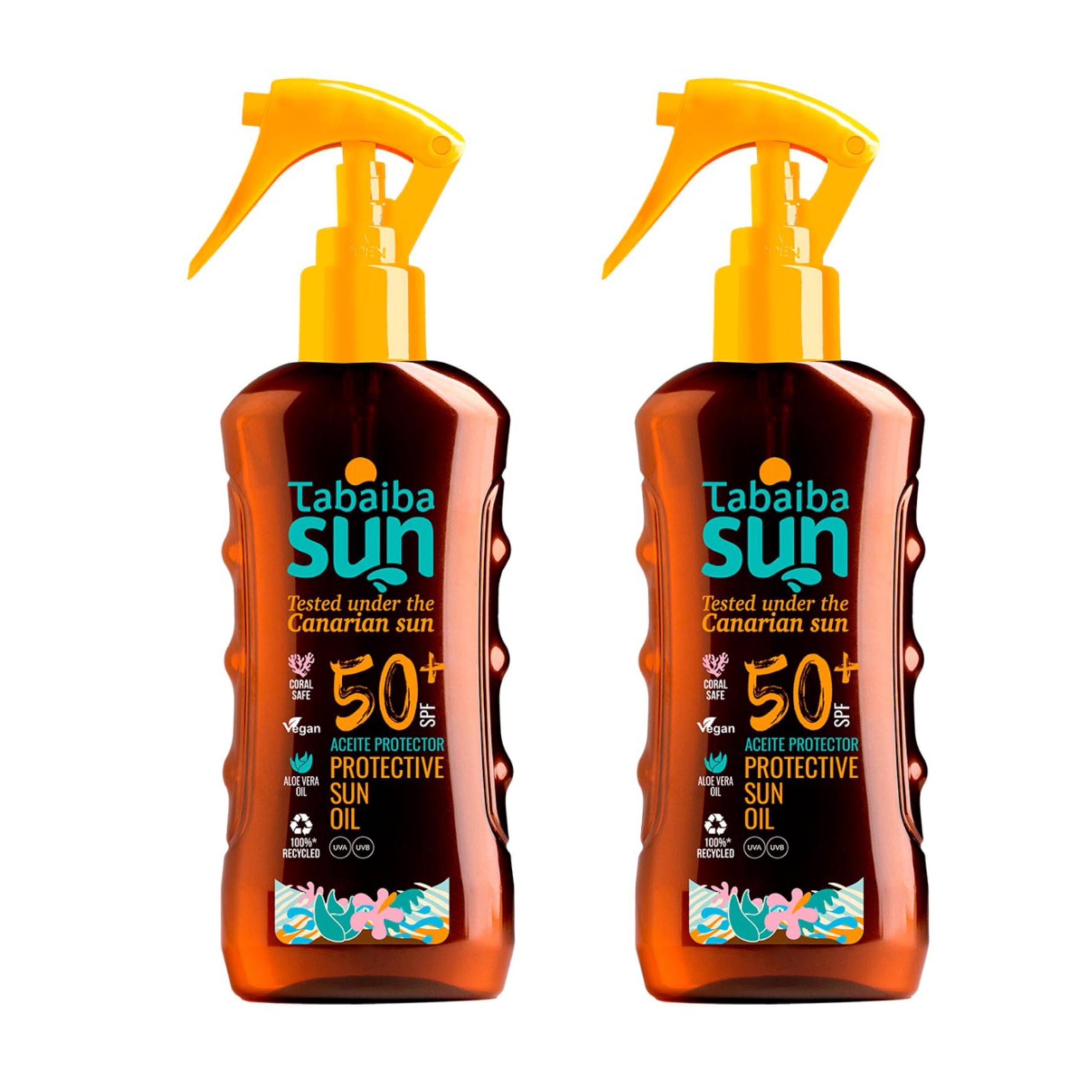 Protective SPF 15 sunscreen oil with a dry, lightweight texture, containing a combination of photostable, high-tolerance filters that protect against solar radiation during exposure and help delay sun-induced aging. Formulated with aloe vera oil for its moisturizing properties and vitamin E for its antioxidant properties. Water-resistant formula. For all skin types. INGREDIENTS Alcohol Denat., Dipropylene Glycol Dibenzoate, Octyldodecanol, Butyl Methoxydibenzoylmethane, Caprylic Capric Triglyceride, Ethylhexyl Salicylate, Aqua, Ethylhexyl Triazone, Helic. ANTHUS ANNU (Sunflower) Seed Oil, Aloe Barbadensis Leaf Extract, Rosmarinus Officinalis (Rosemary) Leaf Extract, Acrylates Octylacrylamide Copolymer, Tocopheryl Acetate, Parfum (Fragrance), Benzyl Alcohol, Coumarin. DIRECTIONS Shake well before use. Apply liberally to the skin 20 to 30 minutes before sun exposure. Reapply frequently, especially after sweating, bathing, or toweling. We recommend wearing a hat, sunglasses, and appropriate clothing while in the sun. SAFETY WARNING Do not ingest. For external use only. Keep out of reach of children. Keep babies and children out of direct sunlight. Avoid sun exposure between 12 pm and 4 pm. Excessive sun exposure is harmful to your health. Limit your sun exposure, even when using sunscreen. Do not spray on your face or eyes. Avoid contact with eyes and mucous membranes. In case of accidental contact, rinse thoroughly with water. Avoid contact with fabrics, as this may cause staining. See moreFor all skin types. Water-resistant formula. Formulated with aloe vera oil for its moisturizing properties and vitamin E for its antioxidant properties.Tabaiba Sun Lot de 2 huiles solaires à l'aloe vera (2 x 200 ml, SPF15) 15 Facteur de protection solaire (SPF) 200 ml (Paquete de 1)DESCRIPTION DU PRODUIT DESCRIPTION DU PRODUIT Huile solaire protectrice SPF 15 à texture sèche et légère, contenant une combinaison de filtres photostables et à haute tolérance qui protègent du rayonnement solaire pendant l'exposition et aident à retarder le vieillissement produit par le rayonnement solaire. Formulé avec de l'huile d'aloe vera qui apporte des propriétés hydratantes et de la vitamine E aux propriétés antioxydantes. Formule résistante à l'eau. Pour tous les types de peaux. INGRÉDIENTS Alcool Denat., DIPROPYLENE GLYCOL DIBENZOATE, OCTYLDODECANOL, BUTYL METHOXYDIBENZOYLMETHANE, CAPRYLIC CAPRIC TRIGLYCERIDE, ETHYLHEXYL SALICYLATE, AQUA, ETHYLHEXYL TRIAZONE, HELIC. ANTHUS ANNUHuile US Seed, Aloe Barbadensis LEAF EXTRACT, ROSMARINUS OFFICINALIS LEAF EXTRACT, ACRYLATES OCTYLACRYLAMIDE COPOLYMER, TOCOPHERYL ACETATE, PARFUM, BENZYL ALCOHOL, COUMARIN. MODE D'EMPLOI Agiter avant utilisation. Appliquer généreusement sur la peau 20 à 30 minutes avant l'exposition au soleil. Répétez l'application fréquemment du produit, surtout après la transpiration, le bain ou le séchage. Nous vous recommandons d'utiliser un chapeau, des lunettes de soleil et des vêtements appropriés pendant l'exposition au soleil. AVERTISSEMENT DE SÉCURITÉ Ne pas ingérer. Pour usage externe uniquement. Tenir hors de portée des enfants. Gardez les bébés et les enfants à l'abri de la lumière directe du soleil. Évitez l'exposition au soleil entre 12 h et 16 h. Une exposition excessive au soleil est dangereuse pour la santé. Modérer le temps d'exposition au soleil, même si vous utilisez un produit de protection solaire. Ne pas vaporiser sur le visage ou les yeux. Éviter le contact avec les yeux et les muqueuses. En cas de contact accidentel, rincer abondamment avec de l'eau. Évitez le contact avec les tissus, cela peut causer des taches. Voir plusPour tous les types de peaux. Formule résistante à l'eau. Formulé avec de l'huile d'aloe vera qui apporte des propriétés hydratantes et de la vitamine E aux propriétés antioxydantes.