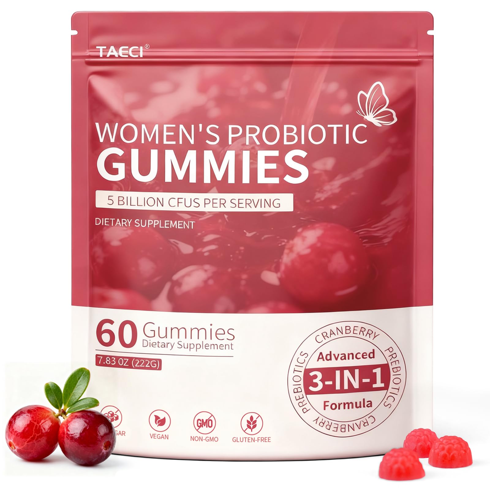 Taeci Cranberry Probiotic Gummies for Women Feminine pH & Flora Support, Yeast Balance & Freshness Aid with Vitamin C for Daily Wellness & Immune Support 60 Gummies