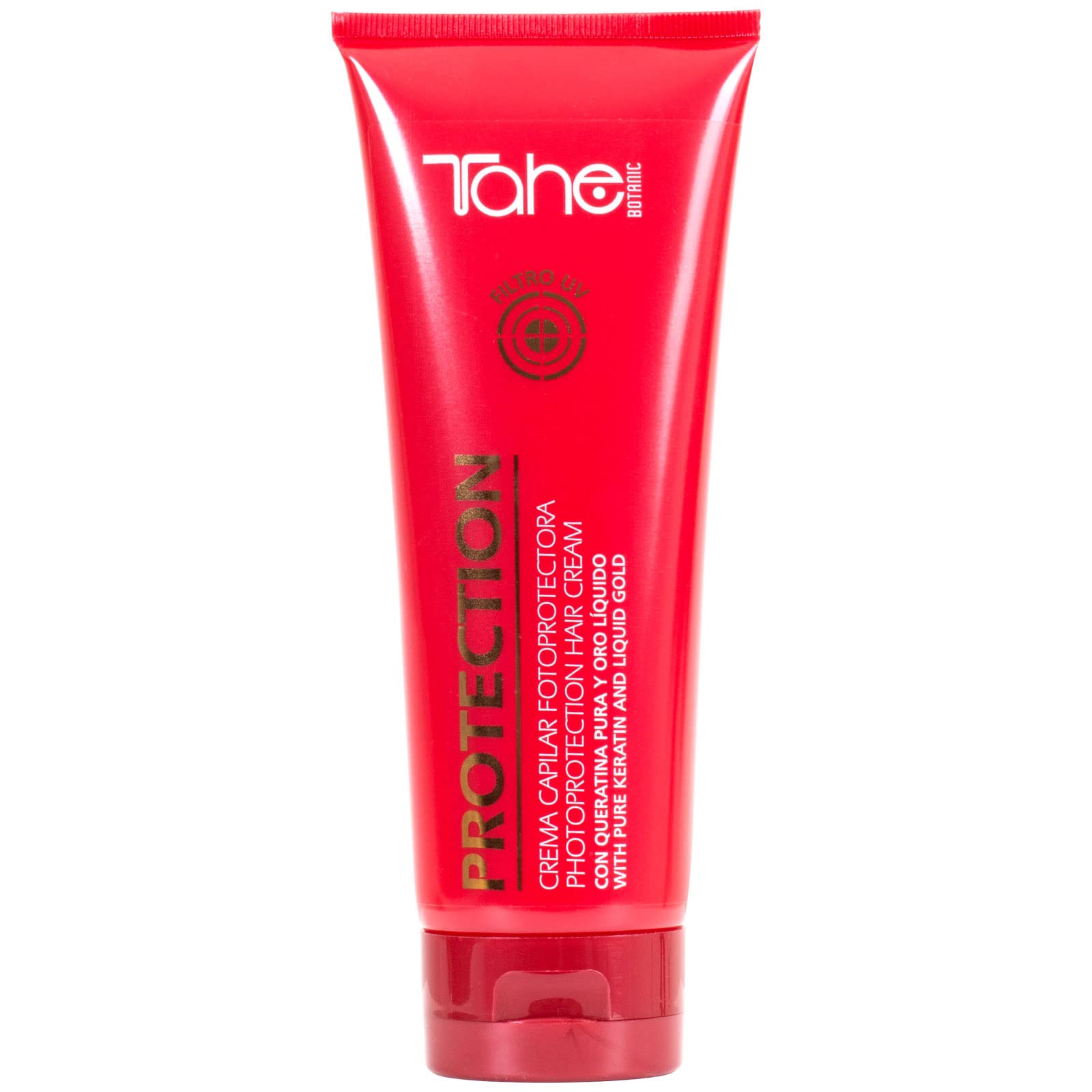 Tahe Botanic solar protection hair cream is photo-resistant and intensely nourishing. Ideal for colored and very sensitive hair, exposed to the sun, chlorine or salt. With pure keratin and a liquid. INGREDIENTS Aqua (Water), Cetyl Alcohol, Limnanthes Alba Seed Oil, Cetrimonium Chloride, Polyquaternium-55, Hydroxypropyl Guar, Ethoxydiglycol, Propylene Glycol, Chamomilla Recutita Extract, Butylene Glycol, Glucose, Bisabolol, Hydrolyzed Keratin Oil, Polysilicone-15, Phenzoic Acid, Dehydroacetic Acid, Caprylyl Glycol, Citric Acid, Caramel, Sodium Benzoate, Potassium Sorbate, Lactic Acid, Parfum (Fragrance), CI 19140, CI 15985. DIRECTIONS Apply before sun exposure to slightly damp hair, paying particular attention to highly sensitized areas. To remove residue, wash with a shampoo for sensitive scalp. SAFETY WARNING Avoid contact with eyes 200 ml. This photoresistant cream is ideal for color-treated and highly sensitized hair exposed to the sun, chlorine, or salt. Thanks to its plant-based technologies and its formulation enriched with pure keratin and liquid gold, it strengthens and restructures the hair fiber from the first application. Protection is the hair cream from the Botanic Solar range that protects your hair from the harmful effects of the sun while providing intense nutrition. Photoprotective hair cream Protection Botanic Solar – Anti-photodegradation of the hair fiber. Tahe Botanic solar protection crème capillaire protectrice est photo-résistante et nutrition intense. Idéal pour les cheveux colorés et très sensibles, exposés au soleil, au chlore ou au sel. Avec de la kératine pure et de l'un liquide. INGRÉDIENTS Aqua (eau), alcool cétylique, huile de graine de Limnanthes Alba, chlorure de cétrimonium, polyquaternium-55, hydroxypropyl guar, éthoxydiglycol, propylèneglycol, extrait de camomille recutita, butylèneglycol, glucose, bisabolol, huile de kératine hydrolysée, polysilicone-15, phénzoïque Acide, acide déhydroacétique, caprylylglycol, acide citrique, caramel, benzoate de sodium, sorbate de potassium, acide lactique, parfum (parfum), CI 19140, CI 15985. MODE D'EMPLOI Appliquer avant l'exposition au soleil sur des cheveux légèrement humides, en insistant particulièrement sur les zones très sensibilisées. Pour éliminer les résidus, laver avec un shampooing pour cuir chevelu sensible. AVERTISSEMENT DE SÛRETÉ Éviter le contact avec les yeux 200 ml. Cette crème photorésistante est idéale pour les cheveux colorés et très sensibilisés, exposés au soleil, au chlore ou au sel. Grâce à ses technologies végétales et sa formulation enrichie en kératine pure et en or liquide, elle renforce et restructure la fibre capillaire dès la première application. Protection est la crème capillaire de la gamme Botanic Solar qui protège vos cheveux des effets nocifs du soleil tout en offrant une nutrition intense. Crème capillaire photoprotectrice Protection Botanic Solar – Anti-photodégradation de la fibre capillaire.