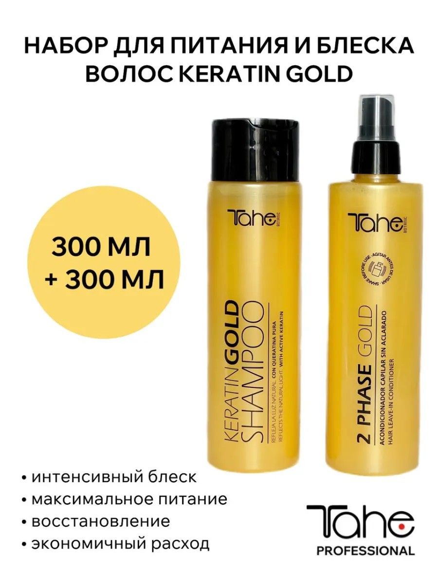 Tahe Набор для волос Keratin Gold питание и блеск 300+300 мл