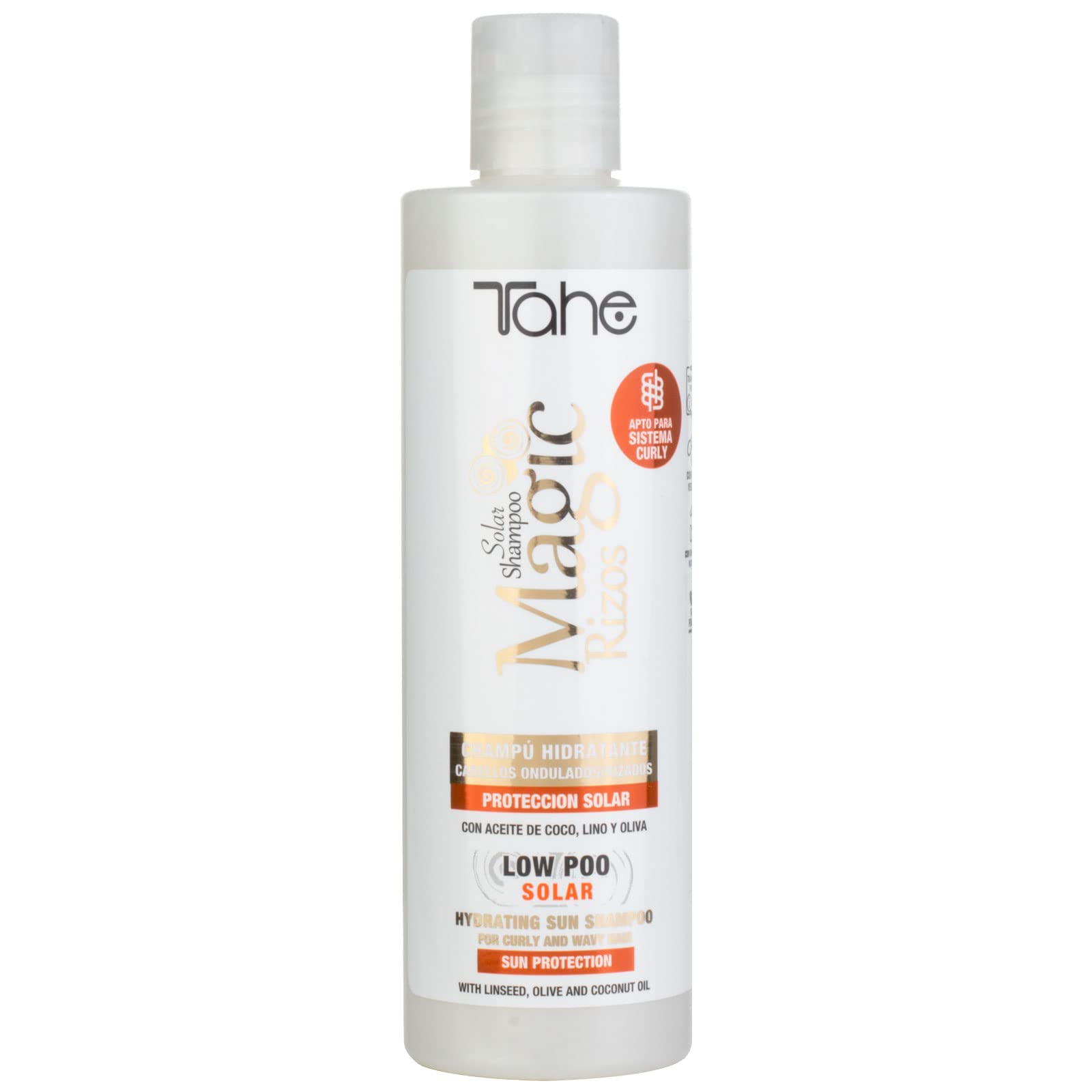 Tahe Magic Rizos Solar Shampooing hydratant avec protection solaire Low Poo idéal pour cheveux bouclés ondulés, 300 ml
