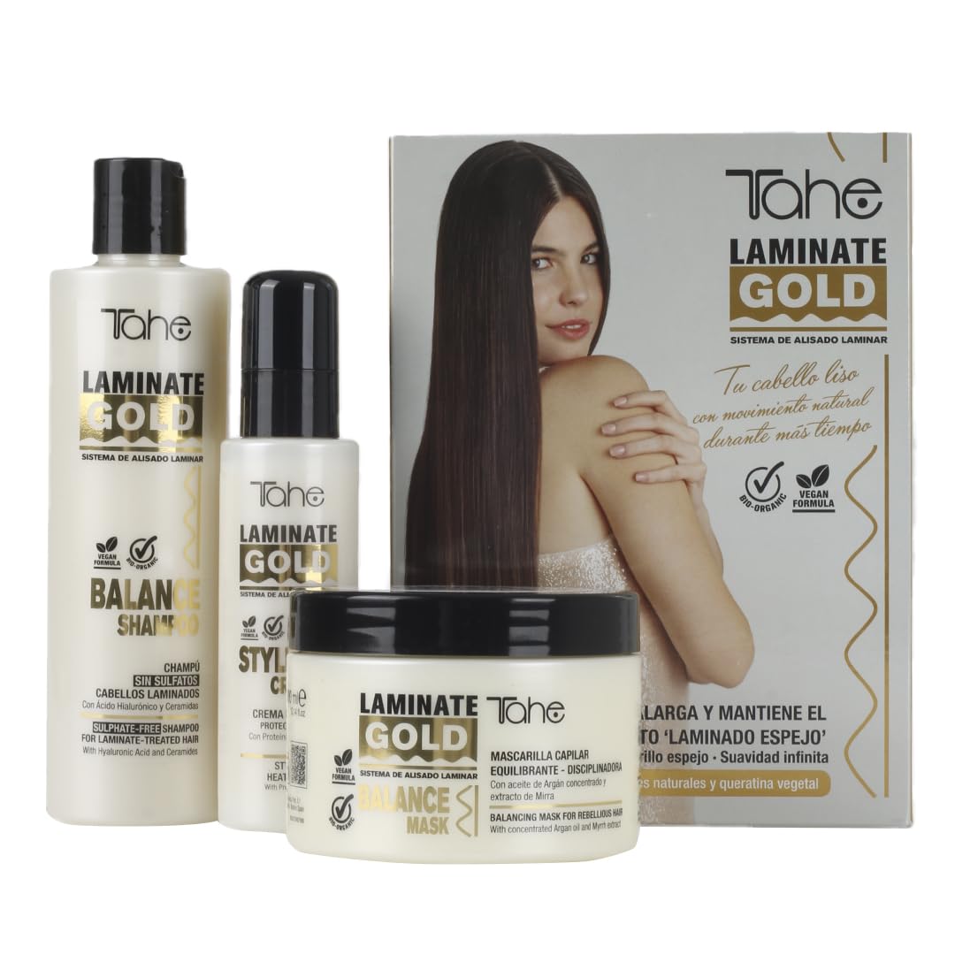 Tahe Laminate Gold Kit d'entretien de lissage laminaire, shampooing masque crème coiffante, 700 ml