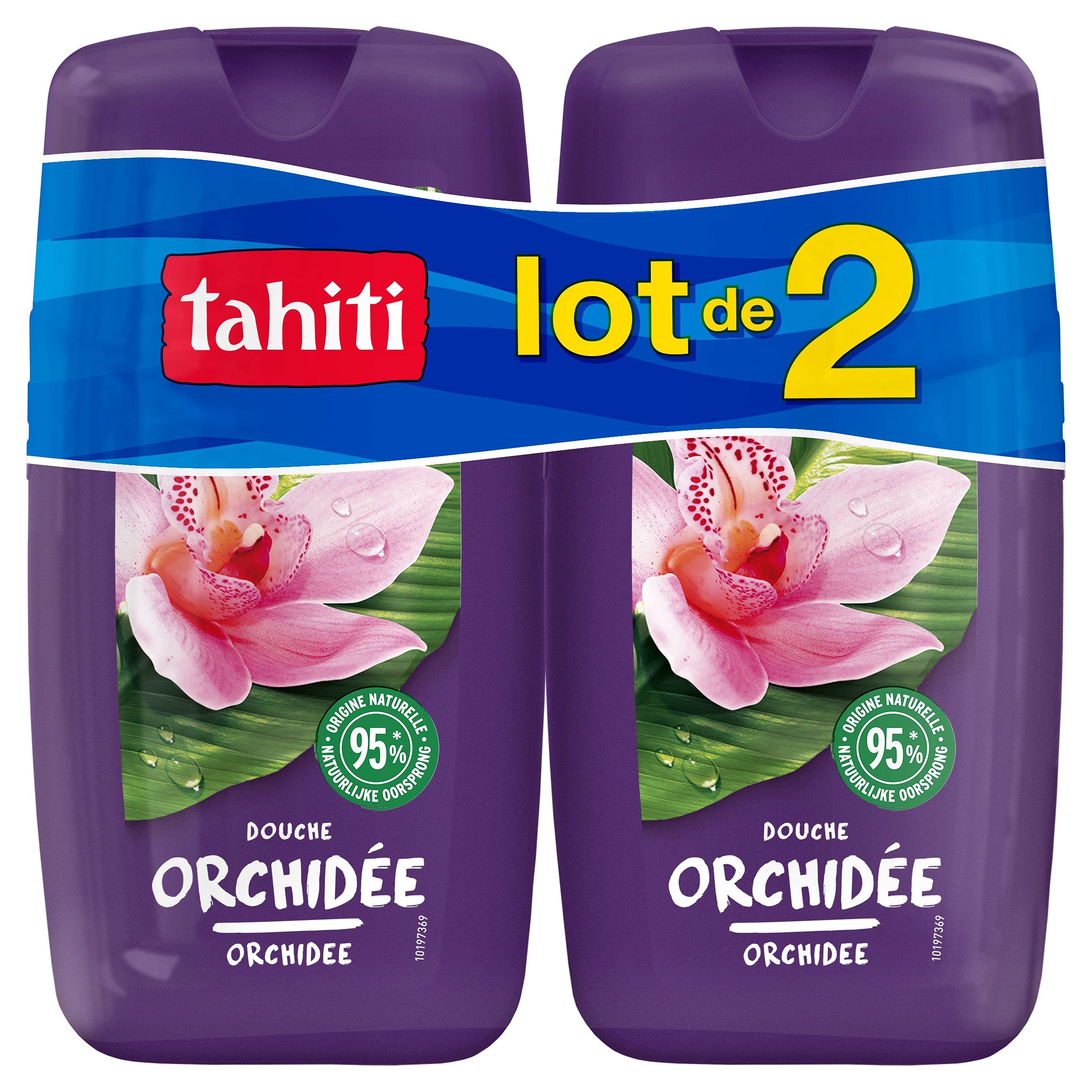 TAHITI - Gel Douche Origines Relaxant Parfum Orchidée d'origine naturelle à 95 et au PH neutre , 250 ml - Lot de 2 flacons Sans parfum 250 ml (Lot de 2)