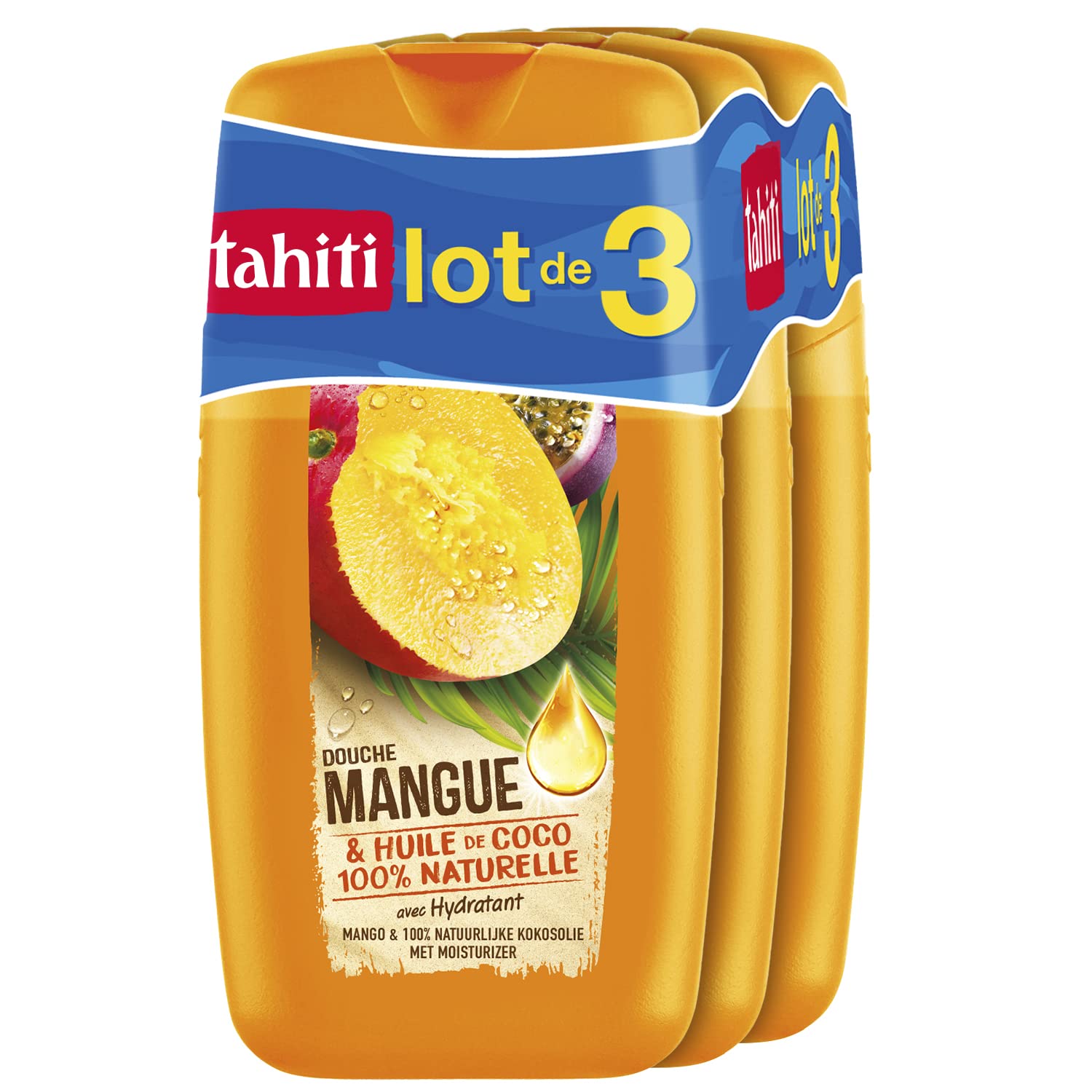 Synonymous with escape and exotic scents, the Tahiti brand offers intensely fragranced shower gels that respect the skin's natural pH. Presented in their iconic colorful cube-shaped bottles, the products in the Tahiti Shower range are perfect for adding a burst of energy to your shower time. Available in standard or family sizes, Tahiti shower gels are suitable for the whole family. With Tahiti shower gels enriched with 100 natural coconut oil, you'll enjoy not only a wonderfully scented cleansing gel, but also irresistible softness with every shower. Its formula, based on natural ingredients, leaves skin soft and fragrant while respecting your skin's delicate balance. Tahiti shower gels with coconut oil come in a variety of exotic fragrances, for relaxing showers with a tropical touch.A TOUCH OF EXOTICISM EVERY DAY: With their enchanting fragrances and skin-friendly formulas, Tahiti shower gels offer you a daily olfactory journey of exoticism. DIRECTIONS FOR USE: Use Tahiti shower gel for your daily wash, as usual. If irritation occurs, discontinue use. In case of contact with eyes, rinse thoroughly with clean water. A SOFT AND FRAGRANT SKIN FEEL: Enriched with coconut oil, this shower gel for women and men leaves skin soft and moisturized while enveloping it in the sweet, tropical, and ultra-fruity scent of mango. FORMULA MADE WITH NATURAL INGREDIENTS: The skin-friendly formula of this Tahiti shower gel for men and women contains a naturally derived moisturizer and 100 natural coconut oil. A SHOWER GEL WITH EXOTIC ACCENTS: As exotic as they are invigorating, the softness and exquisite scents of Tahiti Mango Coconut Oil shower gel transport you to the other side of the world with every shower.Synonyme de dépaysement et de senteurs exotiques, la marque Tahiti propose des gels douche intensément parfumés qui respectent le pH physiologique de la peau. Présentés dans leurs célèbres flacons colorés de forme cubique, les produits de la gamme Tahiti Douche sont parfaits pour apporter un concentré de dynamisme à l'heure de la toilette. Disponibles en format classique ou familial, les gels douche Tahiti conviennent à toute la famille. Avec les gels douche Tahiti enrichis en huile de coco 100 naturelle, vous profitez non seulement d'un gel lavant merveilleusement parfumé, mais aussi d'une douceur irrésistible à chaque douche. Sa formule à base d'ingrédients naturels laisse la peau douce et parfumée tout en respectant votre épiderme. Les gels douche Tahiti à l'huile de coco se déclinent en divers parfums exotiques, pour des douches relaxantes aux accents tropicaux.UNE TOUCHE D'EXOTISME AU QUOTIDIEN : Avec leurs parfums enchanteurs et leurs formules respectueuses de la peau, les gels douche Tahiti vous offrent chaque jour un voyage olfactif dépaysant et empreint d'exotisme. MODE D'EMPLOI : Utilisez Tahiti gel douche pour votre toilette quotidienne, selon vos habitudes. En cas d'irritation, arrêtez l'utilisation. En cas de contact avec les yeux, rincez abondamment à l'eau claire. UNE SENSATION DE PEAU DOUCE ET PARFUMÉE : Enrichi en huile de coco, ce gel douche femme et homme laisse la peau douce et hydratée tout en l'enveloppant du parfum tropical, sucré et ultra-fruité de la mangue. FORMULE À BASE D'INGRÉDIENTS NATURELS : La formule respectueuse de l'épiderme de ce gel douche homme et femme Tahiti contient un hydratant d'origine naturelle et de l'huile de coco 100 naturelle. UN GEL DOUCHE AUX ACCENTS EXOTIQUES : Aussi dépaysantes que dynamisantes, la douceur et les senteurs exquises du gel douche Tahiti Mangue Huile de Coco vous emportent à l'autre bout du monde à chaque douche.TAHITI - Gel Douche Tahiti Mangue Huile de Coco - Formule à Base d'Ingrédients d'Origine Naturelle - Lot de 3 x 250 ml