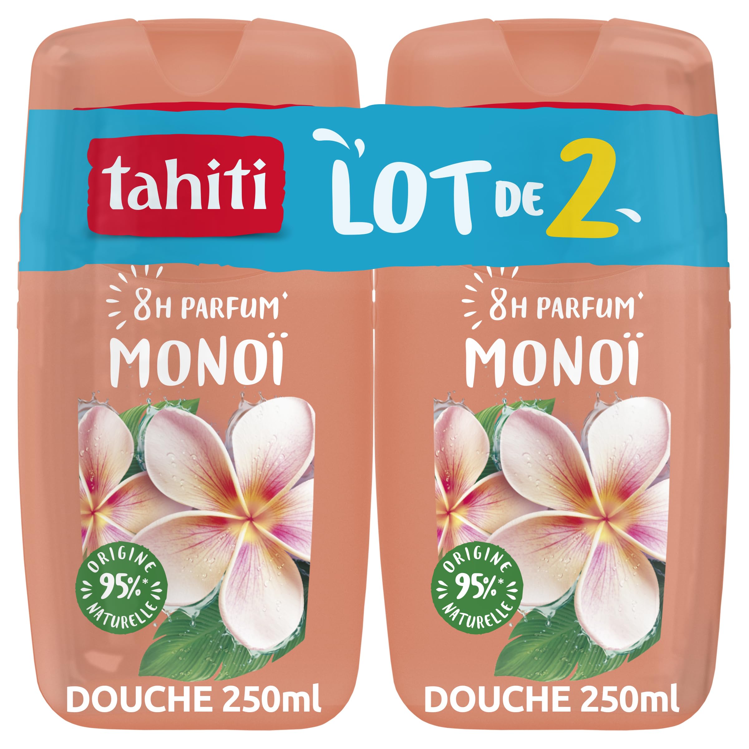 CONVENIENT PACK OF 2: Enjoy your favorite Tahiti shower gel twice over. This pack contains two 250ml bottles, a practical size ideal for having one on hand, for equipping two bathrooms, or for sharing with the family. SKIN-NEUTRAL pH: This shower gel has been dermatologically tested and formulated with a skin-neutral pH. It respects the natural balance of your skin and is suitable for daily use by the whole family, with complete peace of mind. SOFT AND MOISTURIZED SKIN: Thanks to its naturally derived moisturizer and gentle formula, this creamy shower gel cleanses your skin without drying it out. It remains supple, soft to the touch, and comfortable all day long, for a true feeling of well-being. 95 NATURAL ORIGIN FORMULA : Take care of your skin with a more natural formula. This shower gel is made with 95 naturally derived ingredients and is enriched with organic coconut water extract for an authentic and sensorial shower experience. 8H LONG-LASTING EXOTIC FRAGRANCE?: Awaken your senses and enjoy skin delicately scented with monoi and frangipani notes all day long. Its captivating fragrance is designed to last up to 8 hours after showering.