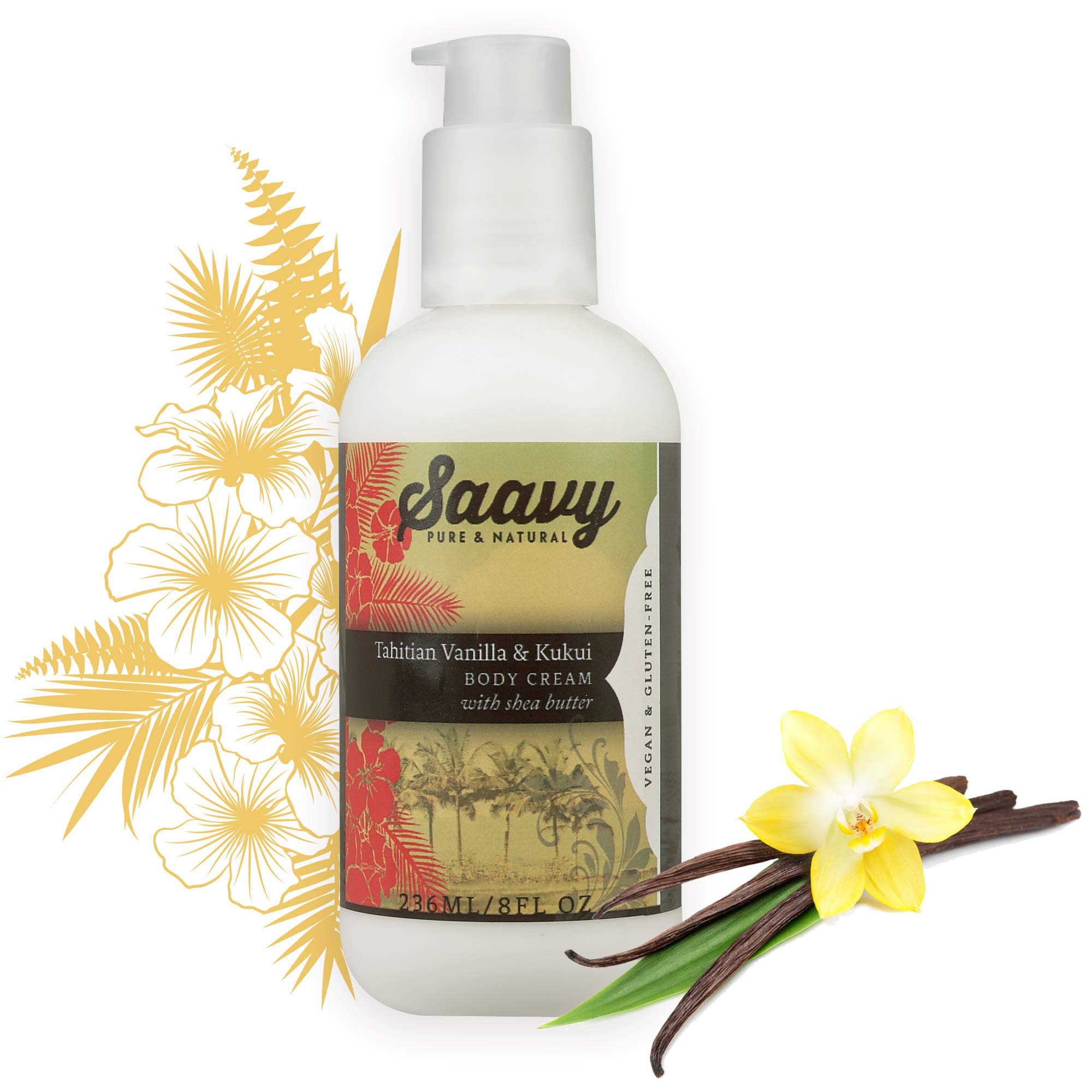 Tahitian Vanilla & Kukui Body Cream | All-Natural Moisturizer | Vegan & Gluten Free Skin Care | 8 oz