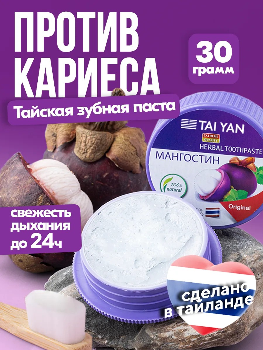 TAI YAN Тайская зубная паста отбеливающая без фтора мангостин