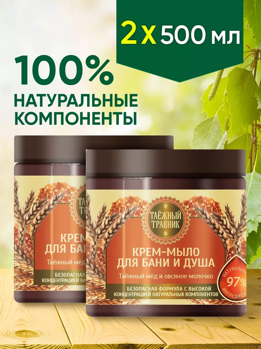 ТАЕЖНЫЙ ТРАВНИК Крем мыло для бани в банке натуральное для тела, набор 2 шт
