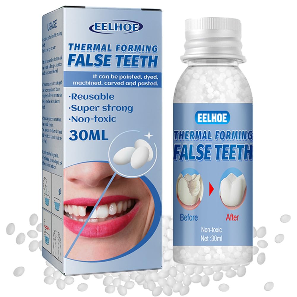 The tooth substitute is simple and easy to use and does not require any special skills or additional tools for tooth restoration. Simply place the tooth replacement in boiling water for a few minutes and then use the tools to adjust the shape and size of the tooth repair kit to your needs. The customized tooth repair set is placed in the desired location to obtain a stable filling.Wide range of applications: For people who need to temporarily repair teeth, artificial teeth are an economical and quick solution. Artificial teeth, also suitable for Halloween or parties. Handmade: The moldable artificial teeth can be individually shaped, the moldable fake teeth can fill large gaps or uneven teeth and repair missing or chipped teeth. The dentures are small and plentiful, allowing you to make adjustments to your own situation and preferences, allowing you to achieve the best possible results in terms of comfort and appearance. Easy to use: You can fill the thermal adhesive beads to make the gaps or various temporary tooth molds in different sizes to make the missing one as you wish, then you can use the veneer for a beautiful look it is recommended to use the files and scissors to trim and polish the finish. Natural and comfortable: The tooth repair granules have a smooth surface that will not scratch your oral tissue. You can temporarily shape tooth replacement to your individual needs, so that tooth replacement does not cause discomfort or bite problems for the time being. Safe Material: The tooth repair kit uses thermoformable beads made of environmentally friendly polymer plastic. Safe and odorless, you can use it with confidence.Tandreparatieset, zelf tandvervanging, tijdelijke tandreparatieset, tijdelijke tandreparatieset, tijdelijke tanden, tandvulmateriaal, thermische kleefparels voor ontbrekende en gebroken tanden De tandvervanger is eenvoudig en gemakkelijk te gebruiken en vereist geen speciale vaardigheden of extra gereedschap voor tandrestauratie. Leg de tandvervanging gewoon enkele minuten in kokend water en gebruik vervolgens het gereedschap om de vorm en grootte van de tandreparatieset aan je behoeften aan te passen. De aangepaste tandreparatieset wordt op de gewenste plaats geplaatst om een stabiele vulling te krijgen.Breed scala aan toepassingen: voor mensen die tijdelijk tanden moeten repareren, zijn kunsttanden een voordelige en snelle oplossing. Kunsttanden, ook geschikt voor Halloween of feestjes. Handgemaakt: de vormbare kunsttanden kunnen individueel worden gevormd, de moldable neptanden kunnen grote gaten of oneffen tanden vullen en ontbrekende of afgebroken tanden repareren. De kunstgebitten zijn klein en overvloedig aanwezig, zodat je aanpassingen aan je eigen situatie en voorkeuren kunt uitvoeren, waardoor je zelf de best mogelijke resultaten kunt maken op het gebied van comfort en uiterlijk bereikt. Eenvoudig te gebruiken: je kunt de thermische kleefkralen vullen om de openingen of verschillende tijdelijke tandvormen in verschillende maten te maken om de ontbrekende naar wens te maken, dan kun je de fineer gebruiken voor een mooie look het wordt aanbevolen om de bestanden en schaar te gebruiken om de afwerking te trimmen en te polijsten. Natuurlijk en comfortabel: de tandreparatiegranulaat heeft een glad oppervlak dat je mondweefsel niet bekrast. Je kunt tandvervanging provisorisch naar je individuele behoeften vormen, zodat tandvervanging voorlopig geen ongemak of bijtproblemen veroorzaakt. Veilig materiaal: de tandreparatieset maakt gebruik van thermovormbare kralen van milieuvriendelijke polymeerkunststof. Veilig en geurloos, je kunt het met vertrouwen gebruiken.